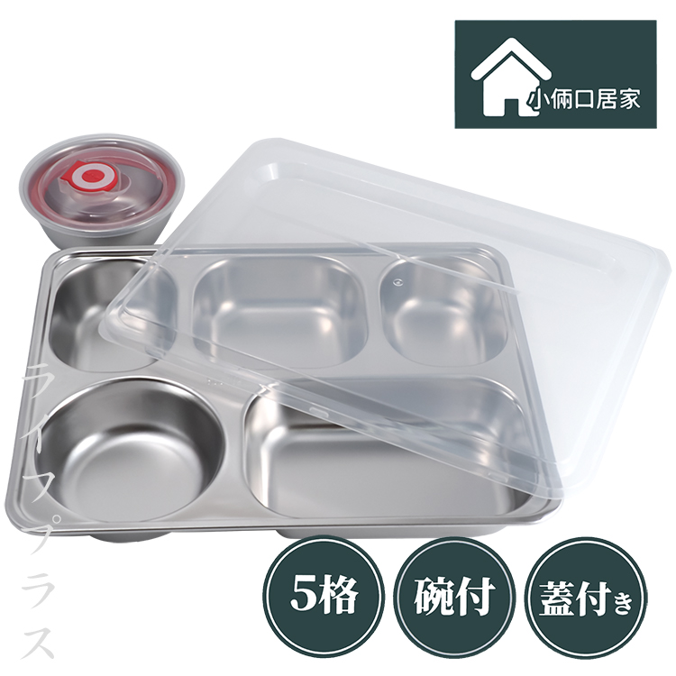 304不鏽鋼五格餐盤-附蓋/附碗-1入