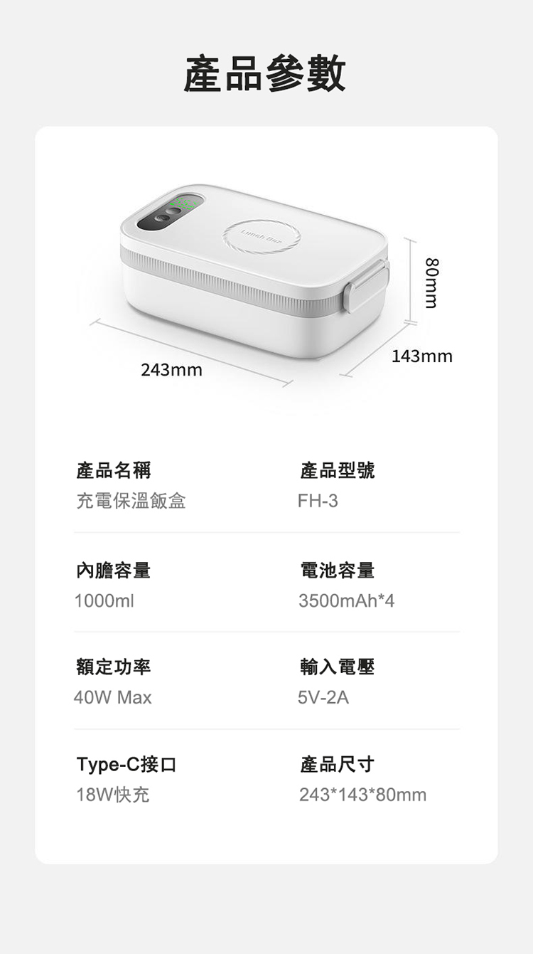 [創聯]物克 無線充電加熱飯盒 FH-3