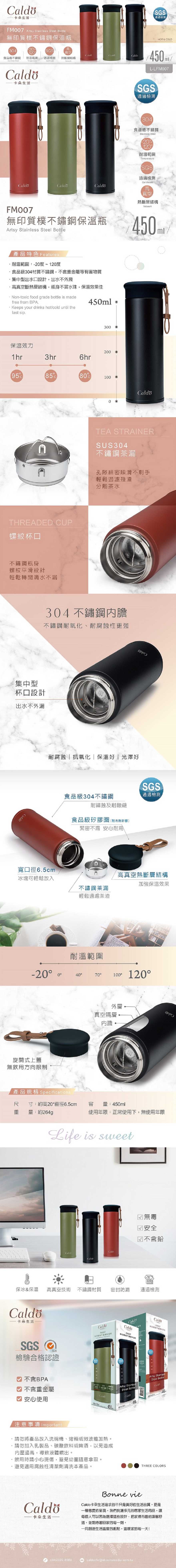[ Caldo卡朵 ] 無印質樸不鏽鋼保溫瓶450ml - FM007 - 綠