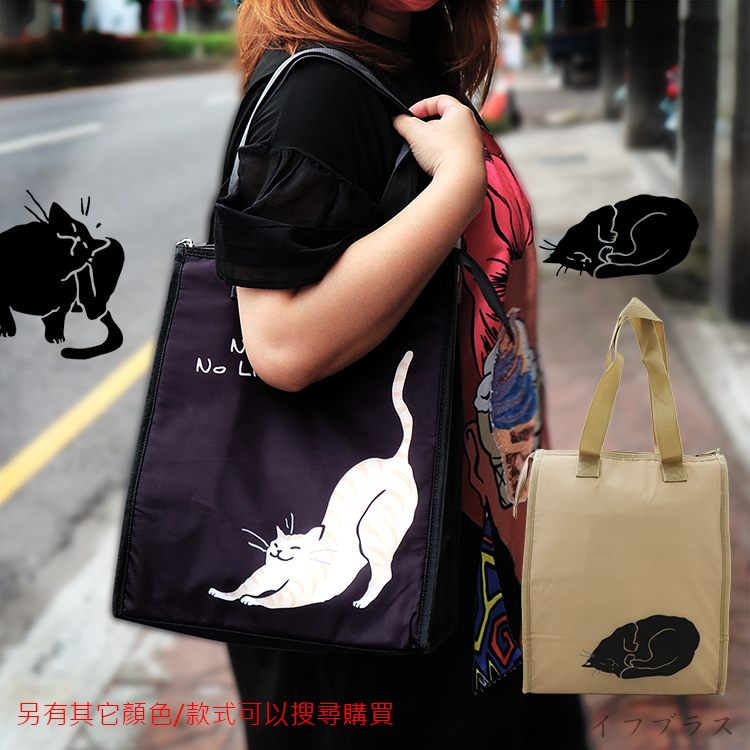 日本進口慵懶貓咪保溫保冷購物袋-灰黑色-1入