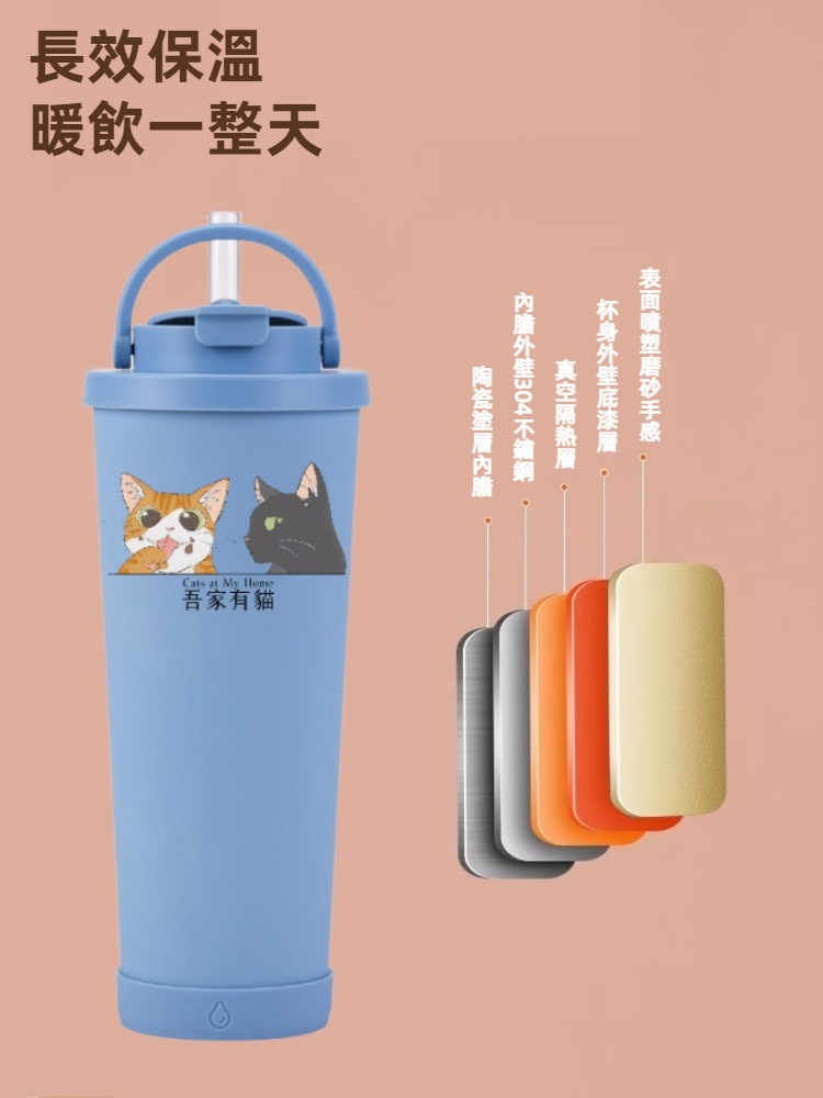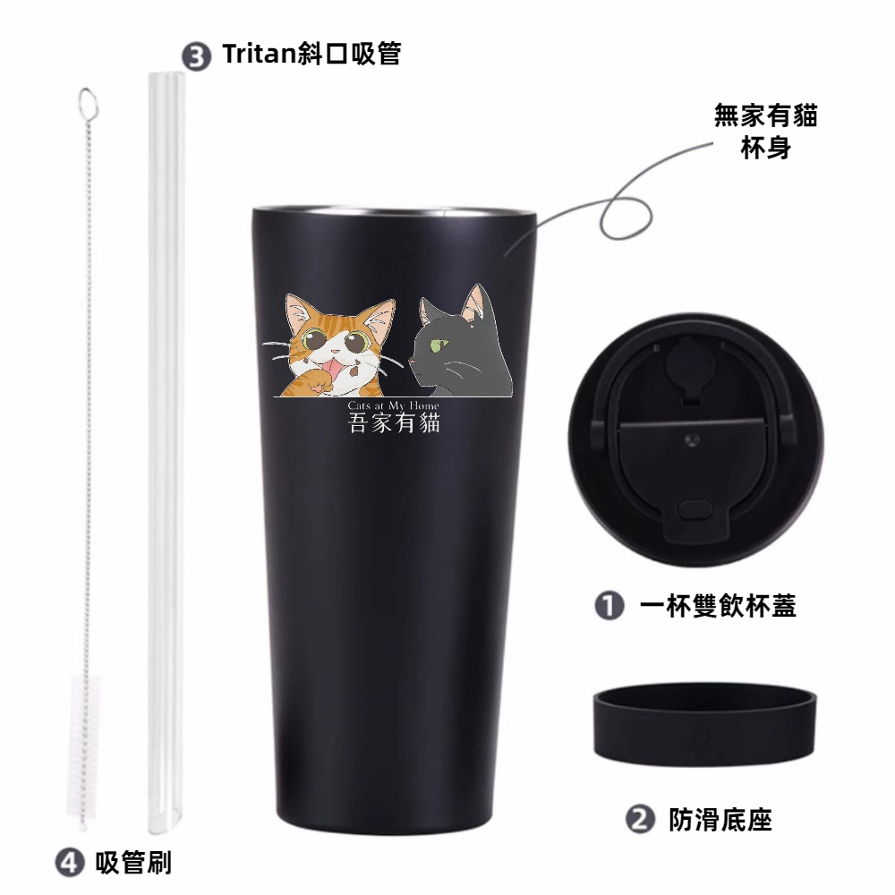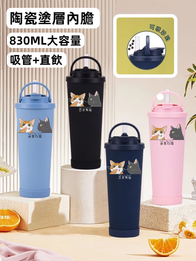 #吾家有貓 #雙飲款 #陶瓷塗層 #珍珠奶茶 #吸管杯 #Tritan珍珠吸管 #830ML #保溫杯 #環保杯 #專利品牌貓圖