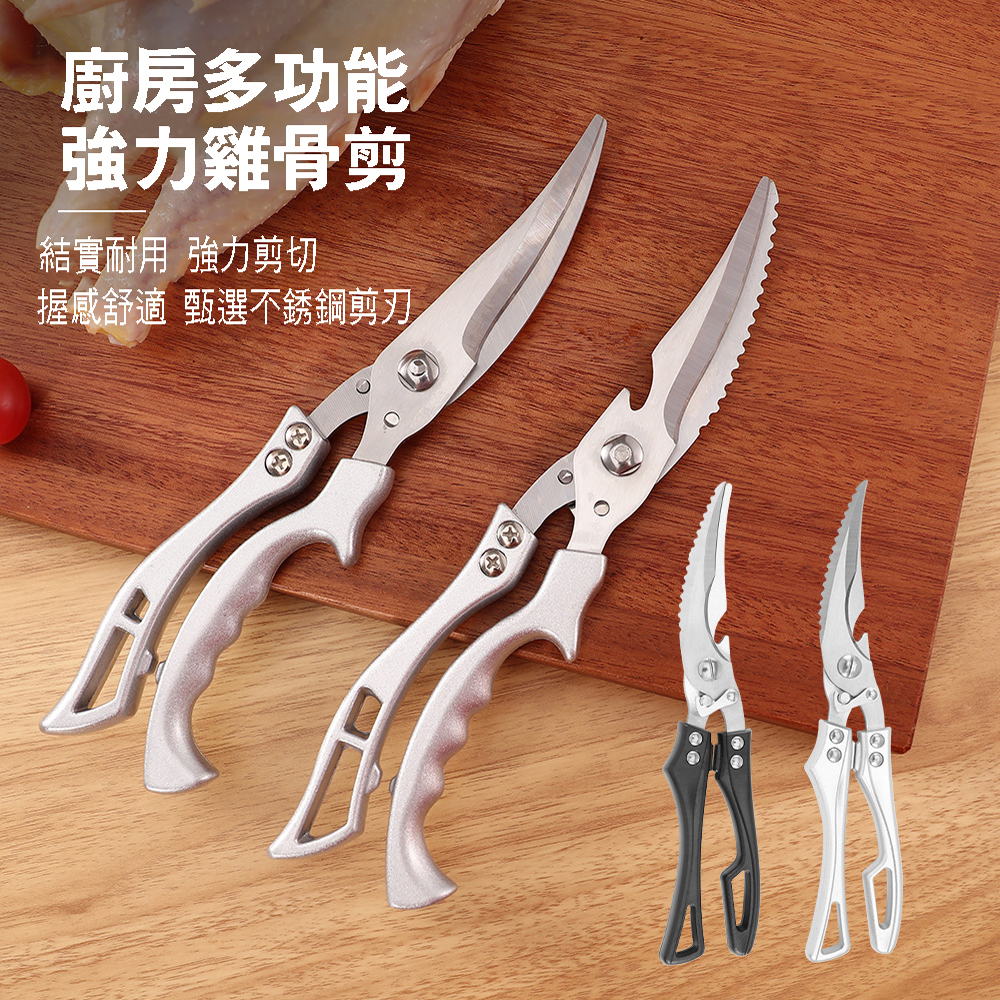 【SV61318】二代不鏽鋼多功能雞骨剪刀 料理剪 食物剪刀 骨頭剪 海鮮螃蟹剪 料理剪 開罐器 安全扣設計 廚房剪