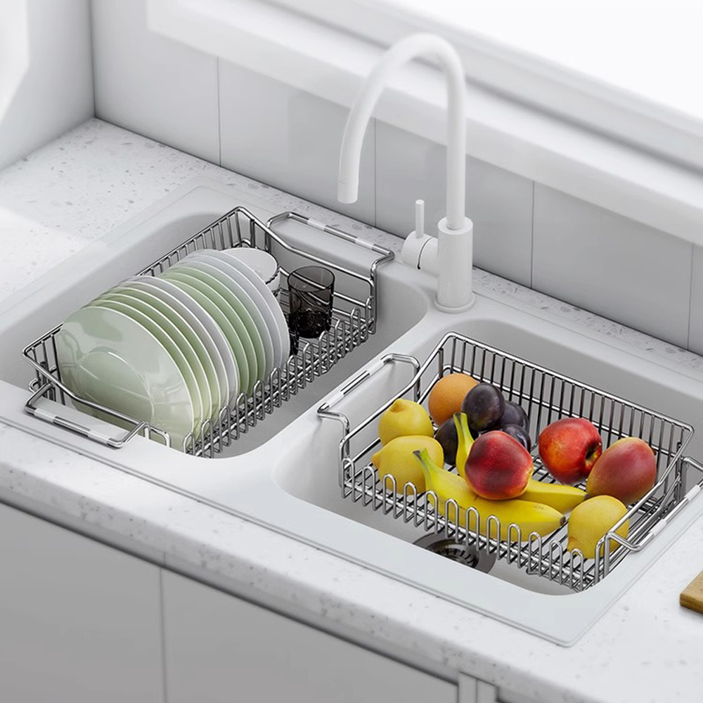 304不銹鋼廚房水槽可伸縮瀝水籃置物架
