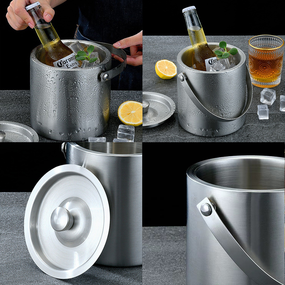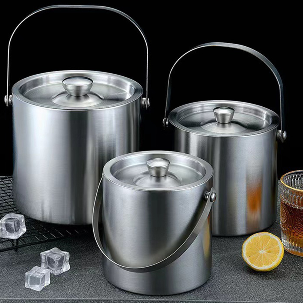 【SV61200】4L 304不鏽鋼雙層附蓋手提冰桶 冰塊桶 保冰桶 紅酒桶 啤酒香檳桶 露營 KTV 酒吧 餐廳