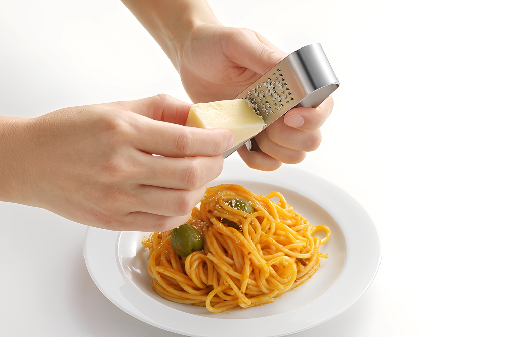 手握式磨泥器,即便是起司塊等較硬食材,也能夠穩定出力、輕鬆拿捏研磨力道。