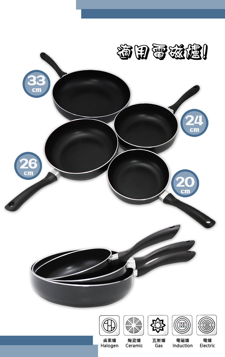 材 質:合金 / 黑晶不沾處理 / 電木手把