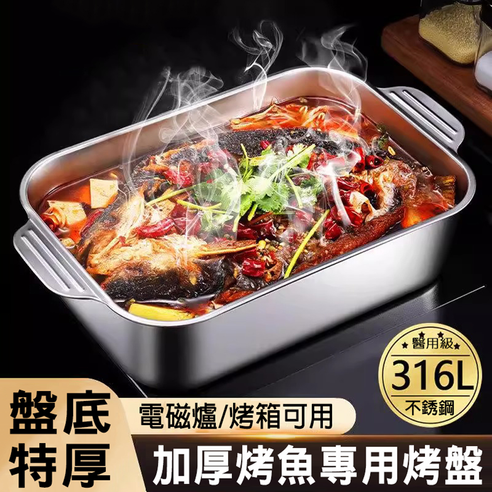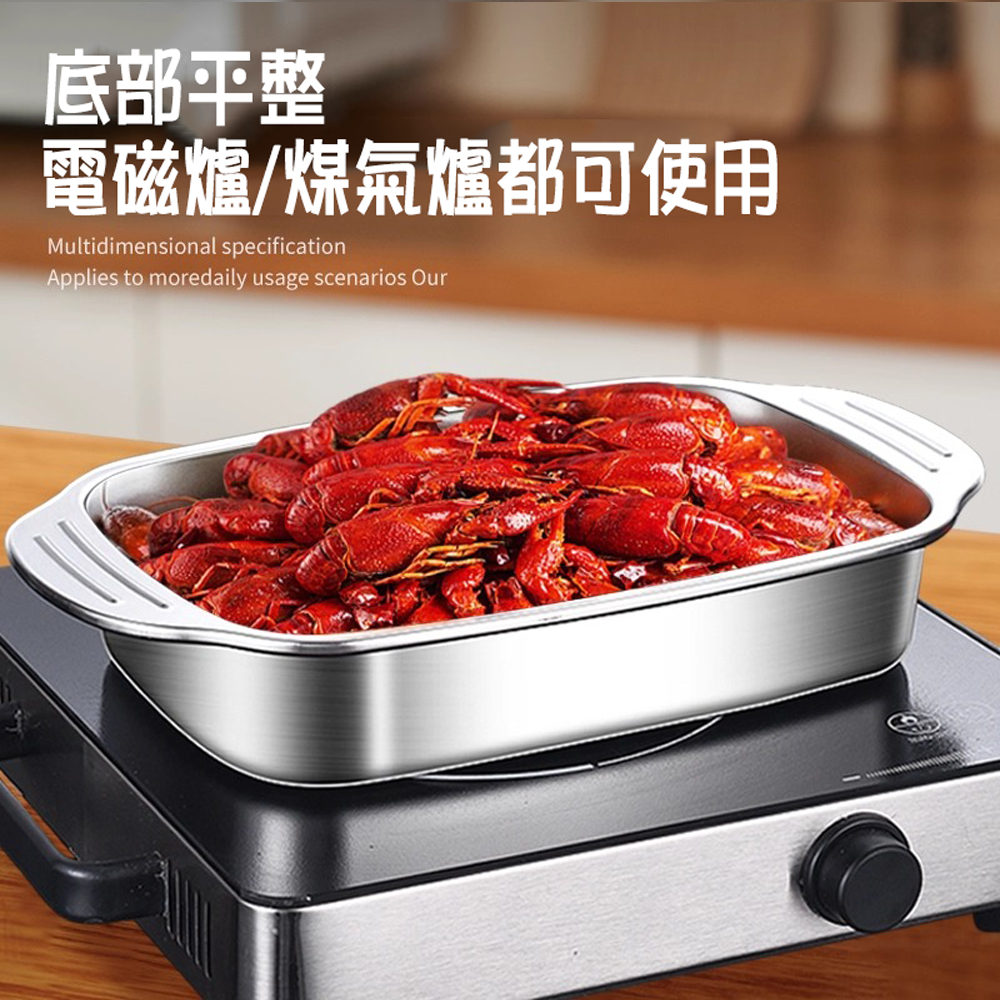 【SV61354】多功能 316不銹鋼烤魚盤 長方形深盤 防燙雙耳魚盤 燒烤烘焙用具 家用商用(無蓋)