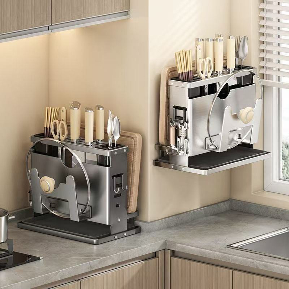 可壁掛/檯面多功能不銹鋼廚房刀具勺筷砧板置物架