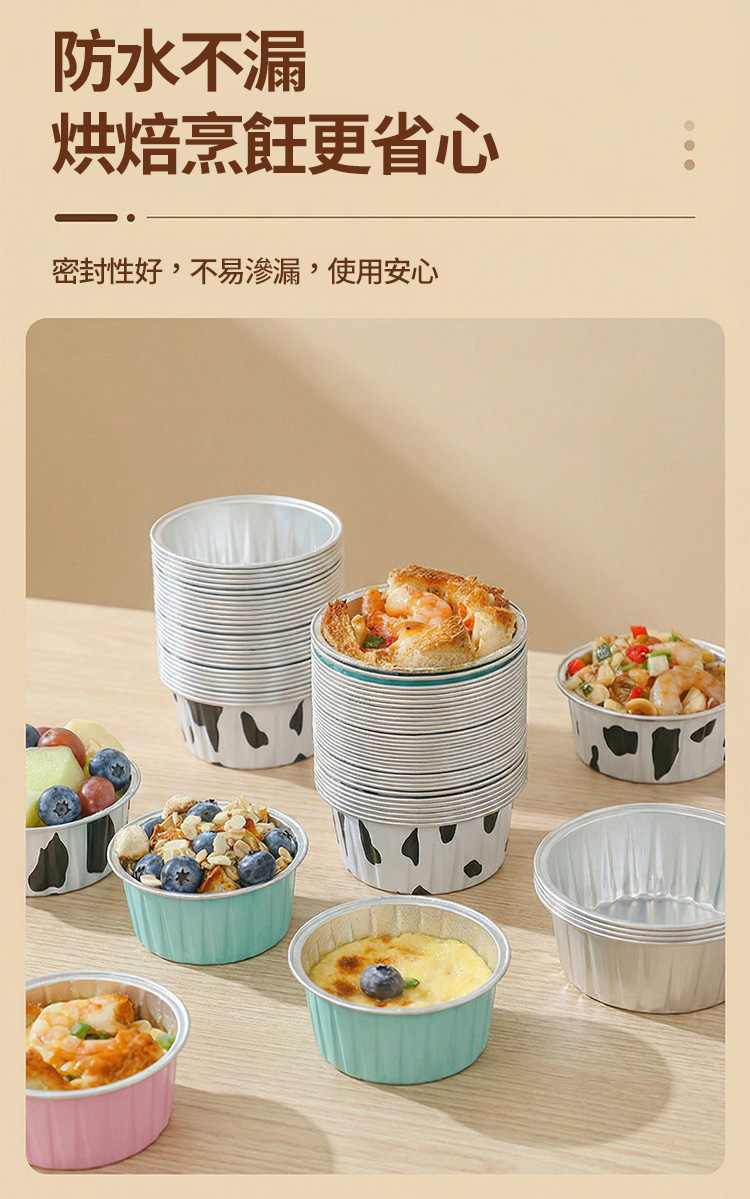 ●免洗免刷即用即丟●加厚材質不易變形●烘焙烹飪更省心●花樣美食隨心做顏色:隨機出貨材質:鋁箔、食品接觸級環氧樹脂尺寸:如圖片所示重量:2g(單)/125g(50入)有效期限:3年產地:中國材積:9.5*9.5*12cm包裝內容物:本體*50