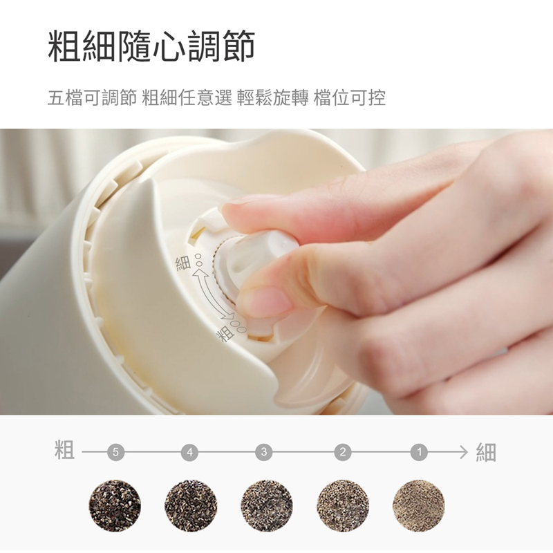 根據不同料理需求,自由調整顆粒粗細,無論是細粉還是粗粒,隨心所欲。