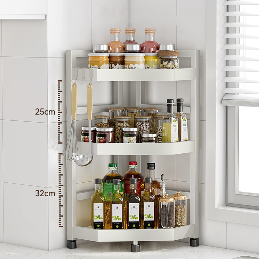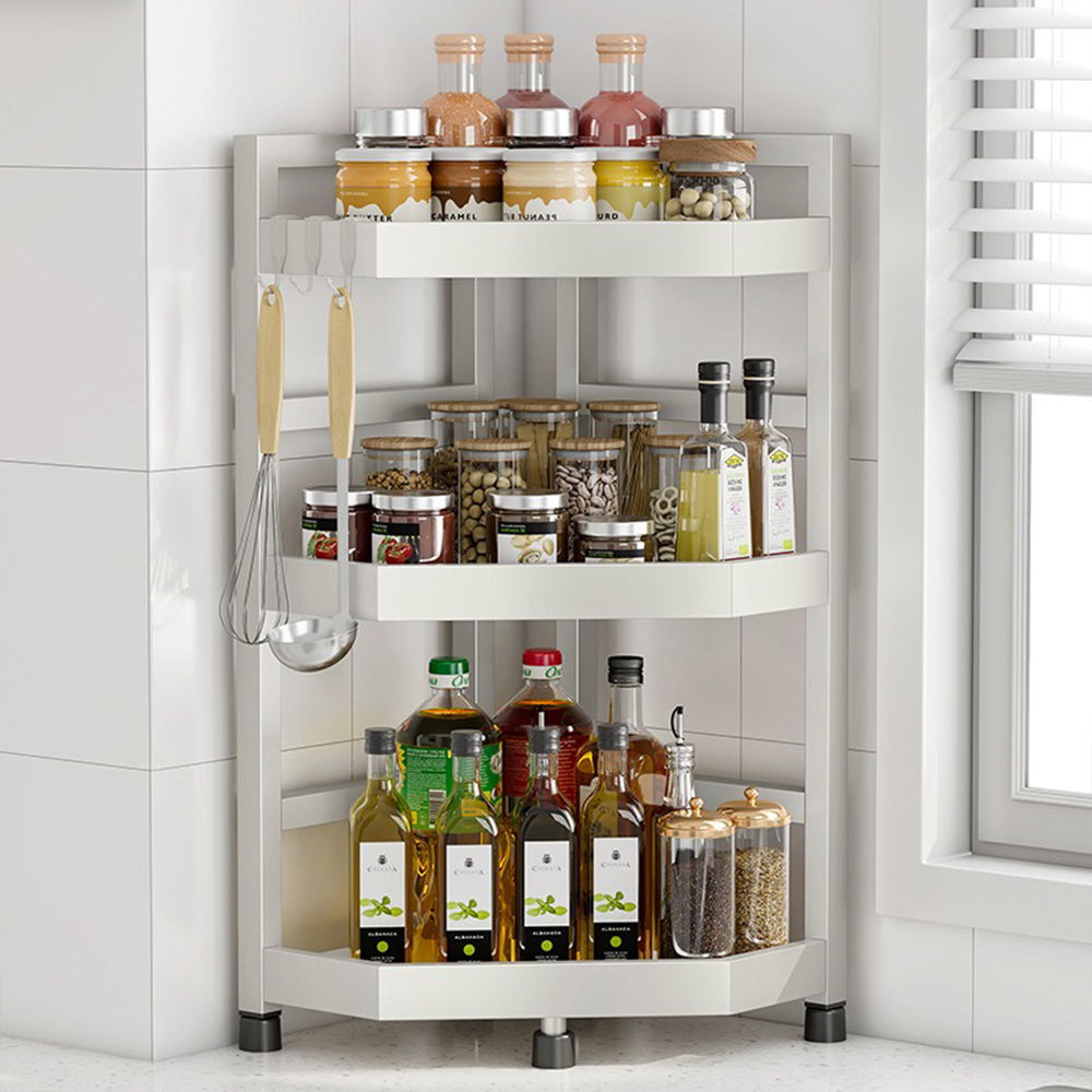 【YV61279】三層多功能檯面 不銹鋼廚房調味料置物架+筷子筒 三角置物架 轉角瓶罐收納架 三角扇形收納架