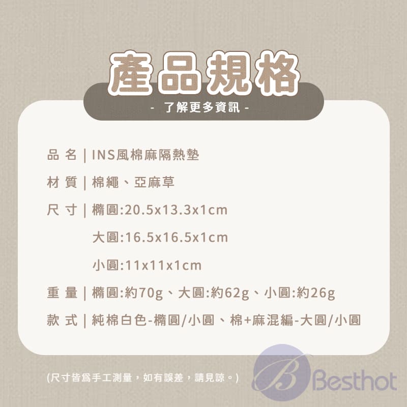 【Besthot】ins風棉麻隔熱墊