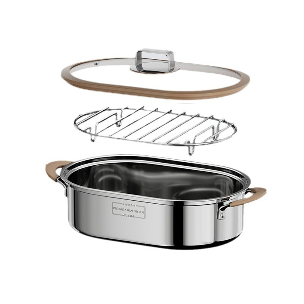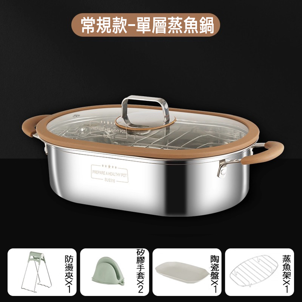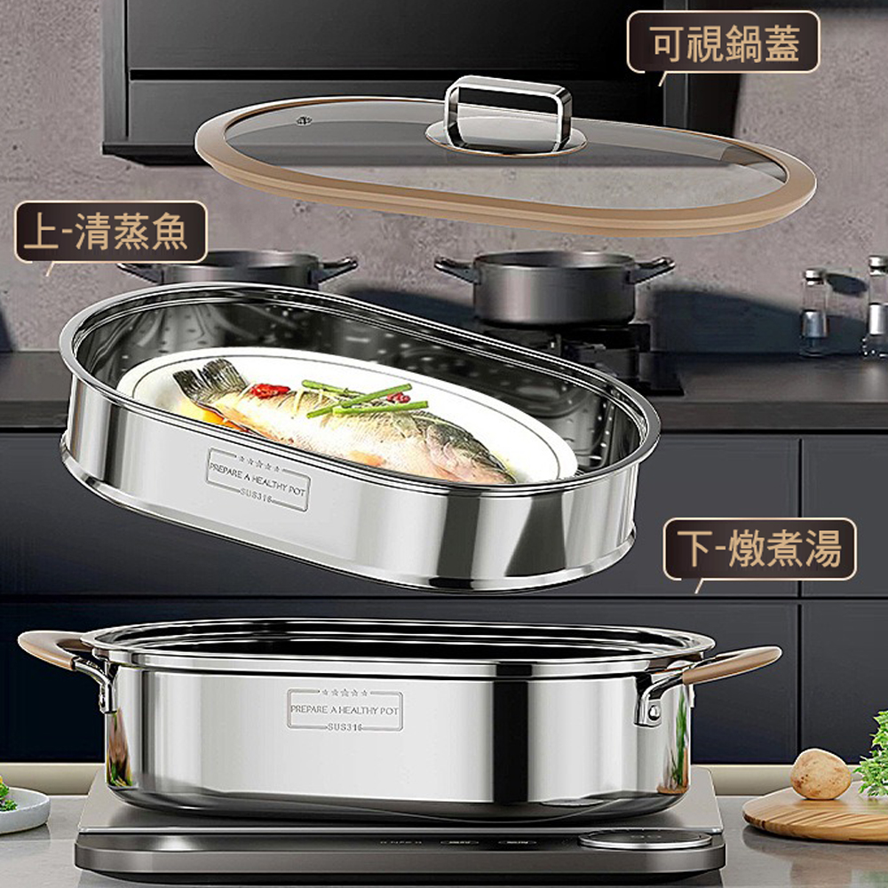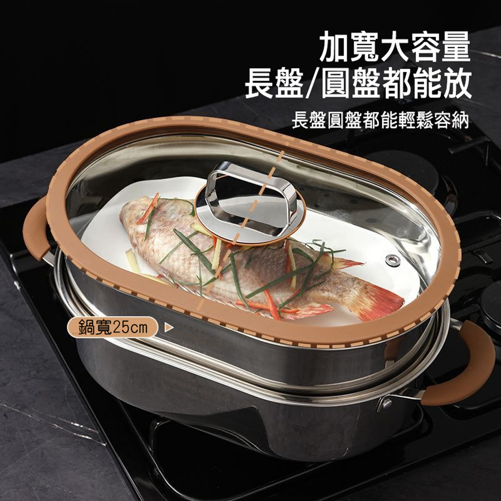【SV61353】單層316不鏽鋼蒸魚鍋 清蒸鍋 橢圓魚鍋 大容量蒸鍋 海鮮塔蒸鍋 湯鍋 蒸煮燜燉