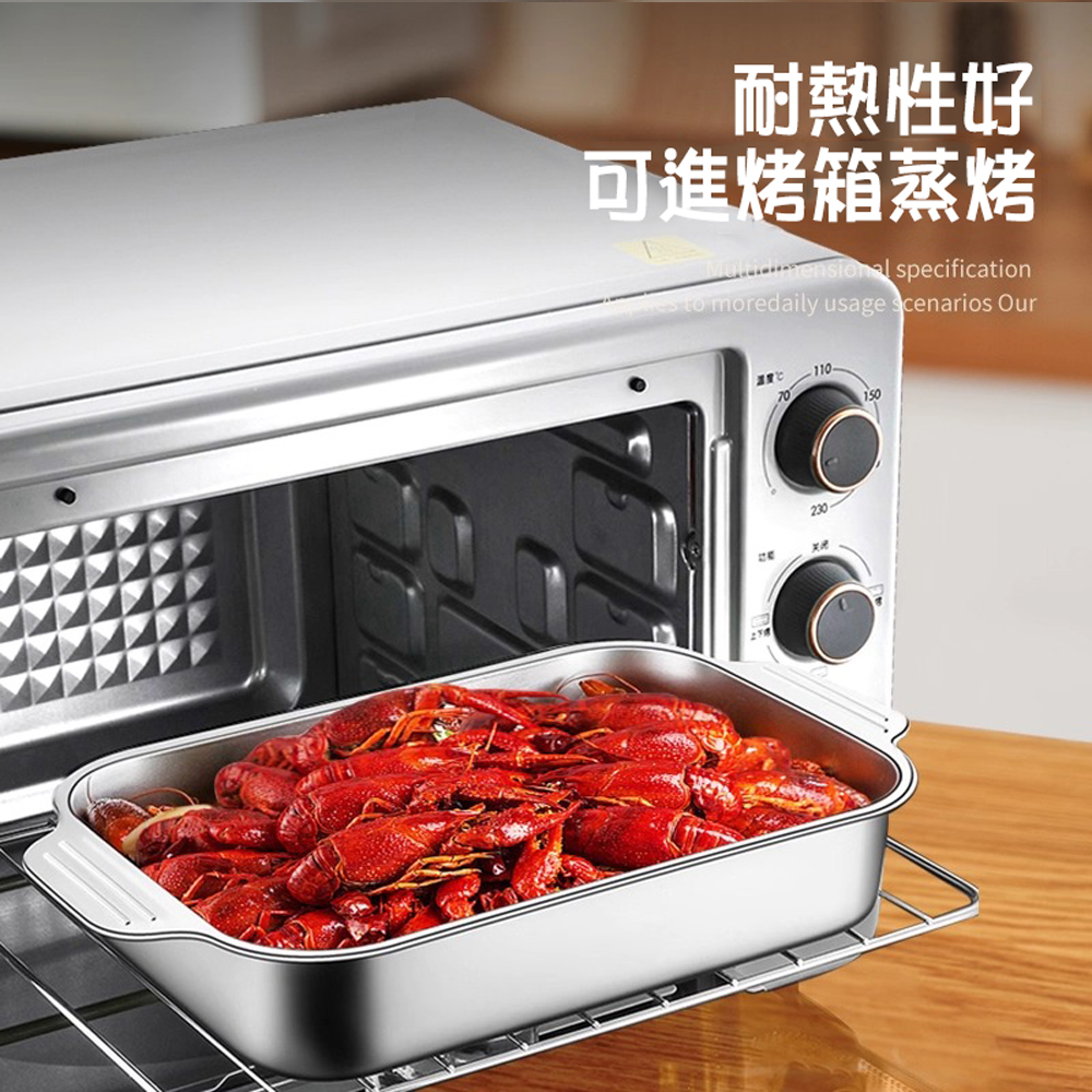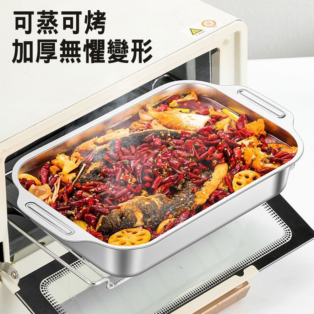 【SV61354】多功能 316不銹鋼烤魚盤 長方形深盤 防燙雙耳魚盤 燒烤烘焙用具 家用商用(無蓋)