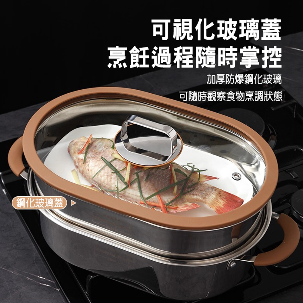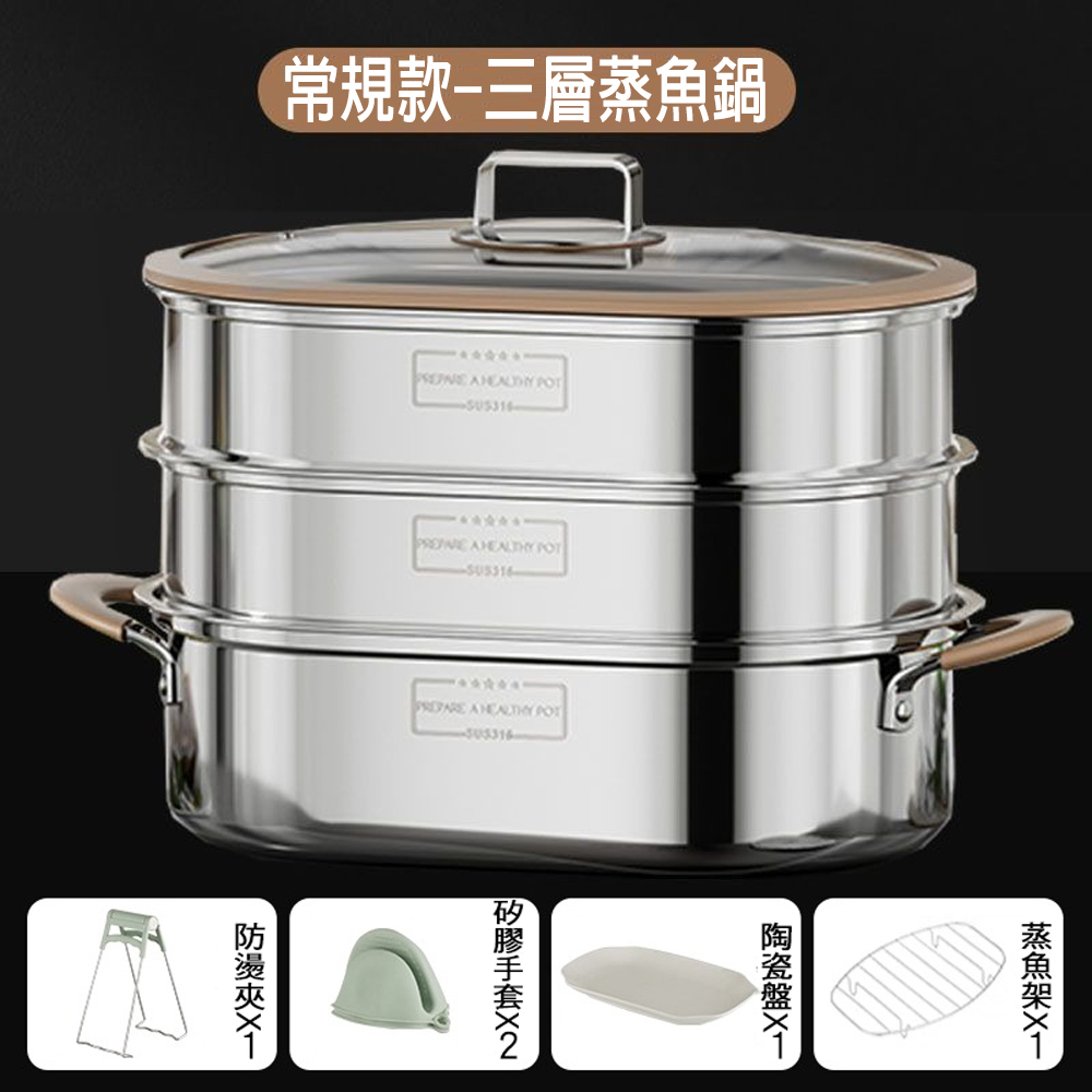 【SV61353】三層316不鏽鋼蒸魚鍋 清蒸鍋 橢圓魚鍋 大容量蒸鍋 海鮮塔蒸鍋 湯鍋 蒸煮燜燉