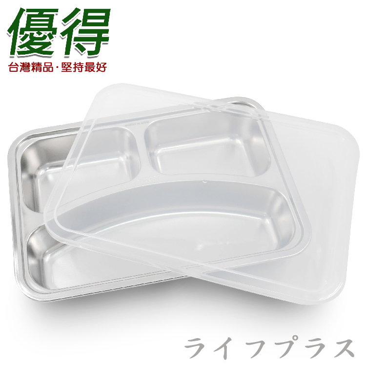 優得304不鏽鋼完美餐盤-3格-附蓋-2組