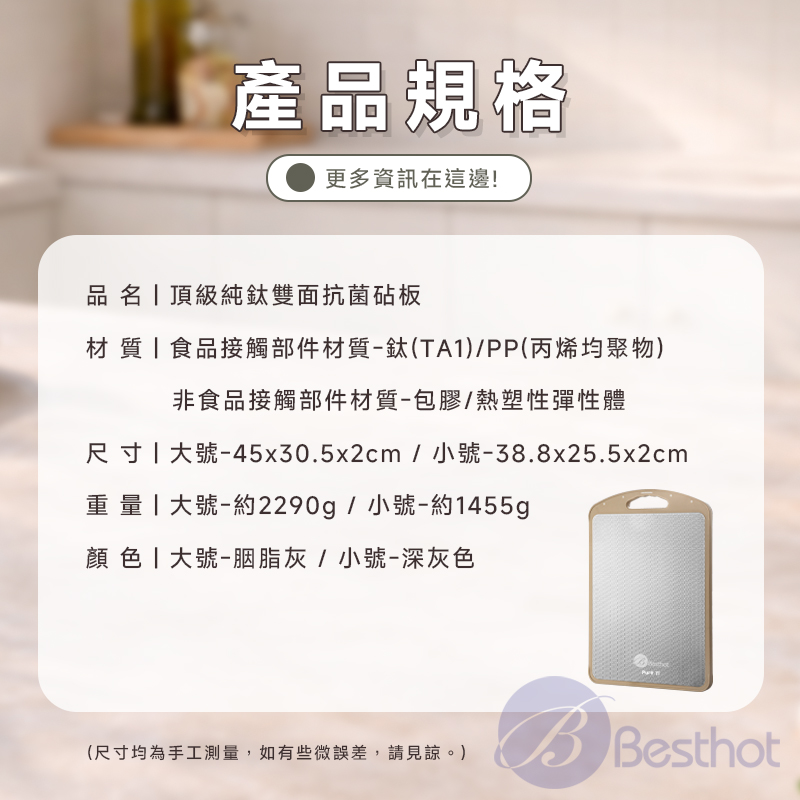 【Besthot】頂級純鈦雙面抗菌砧板