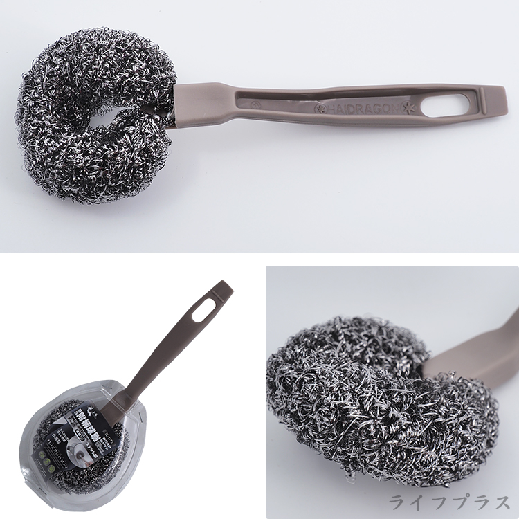 此款不鏽鋼鍋鍋刷,手把在使用時,不但省力順手,使用於清潔溫度較高之鍋(餐)具時,更可避免被其燙到,輕鬆清洗好洗好沖。