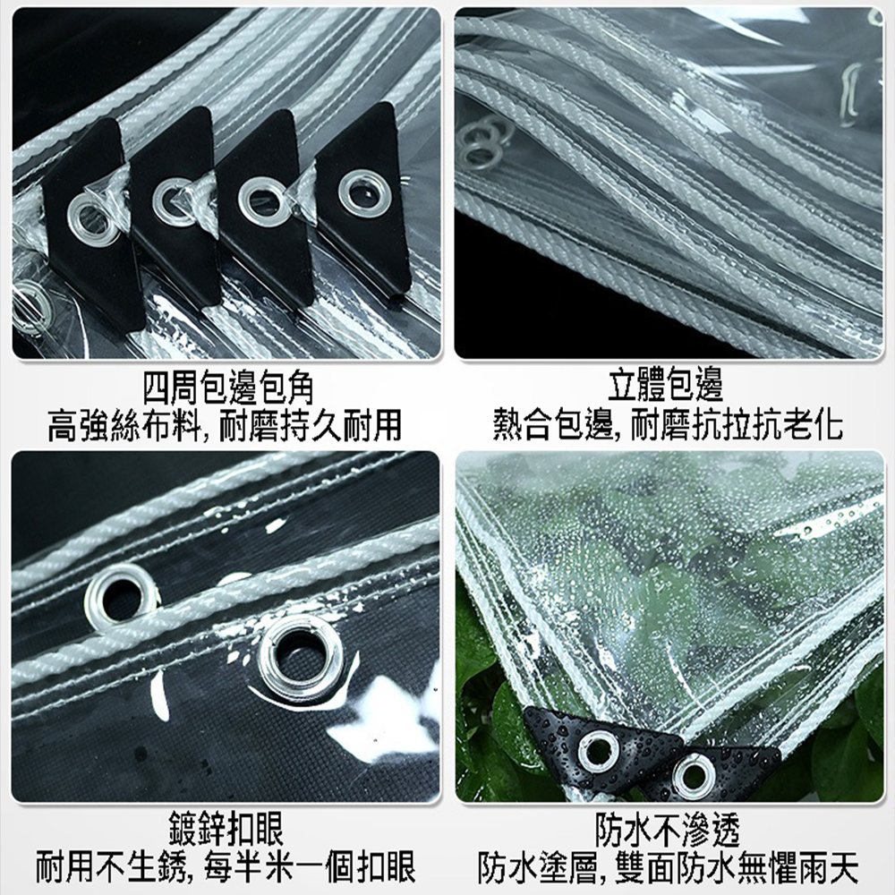 【SV61270】白色透明約300×300cm透明防水布PVC防雨布 戶外雨棚布 陽台樓頂遮雨防水 保護膜 防風擋雨 溫室布 包邊附綁繩