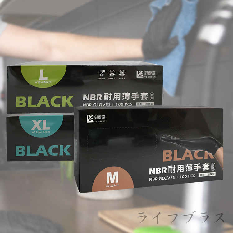 NBR耐用加厚薄手套-黑色-100入x2盒