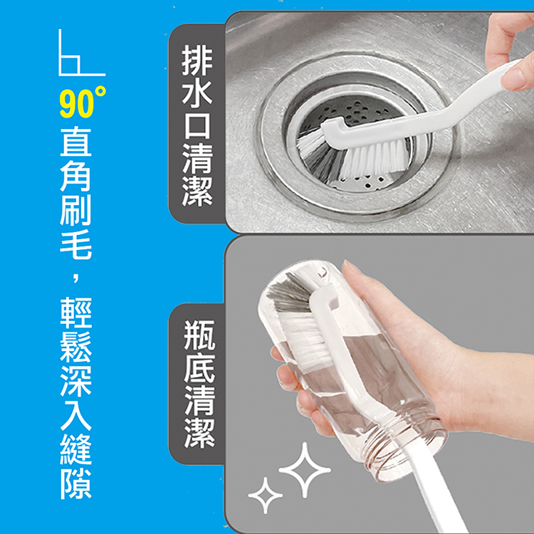 特殊排水口清潔刷,多用途使用,能輕鬆清洗瓶底、餐具各處複雜間隙處的髒污,方便深入溝槽,刷除污垢、茶垢、咖啡垢等髒污,居家必備的縫隙刷洗好幫手。