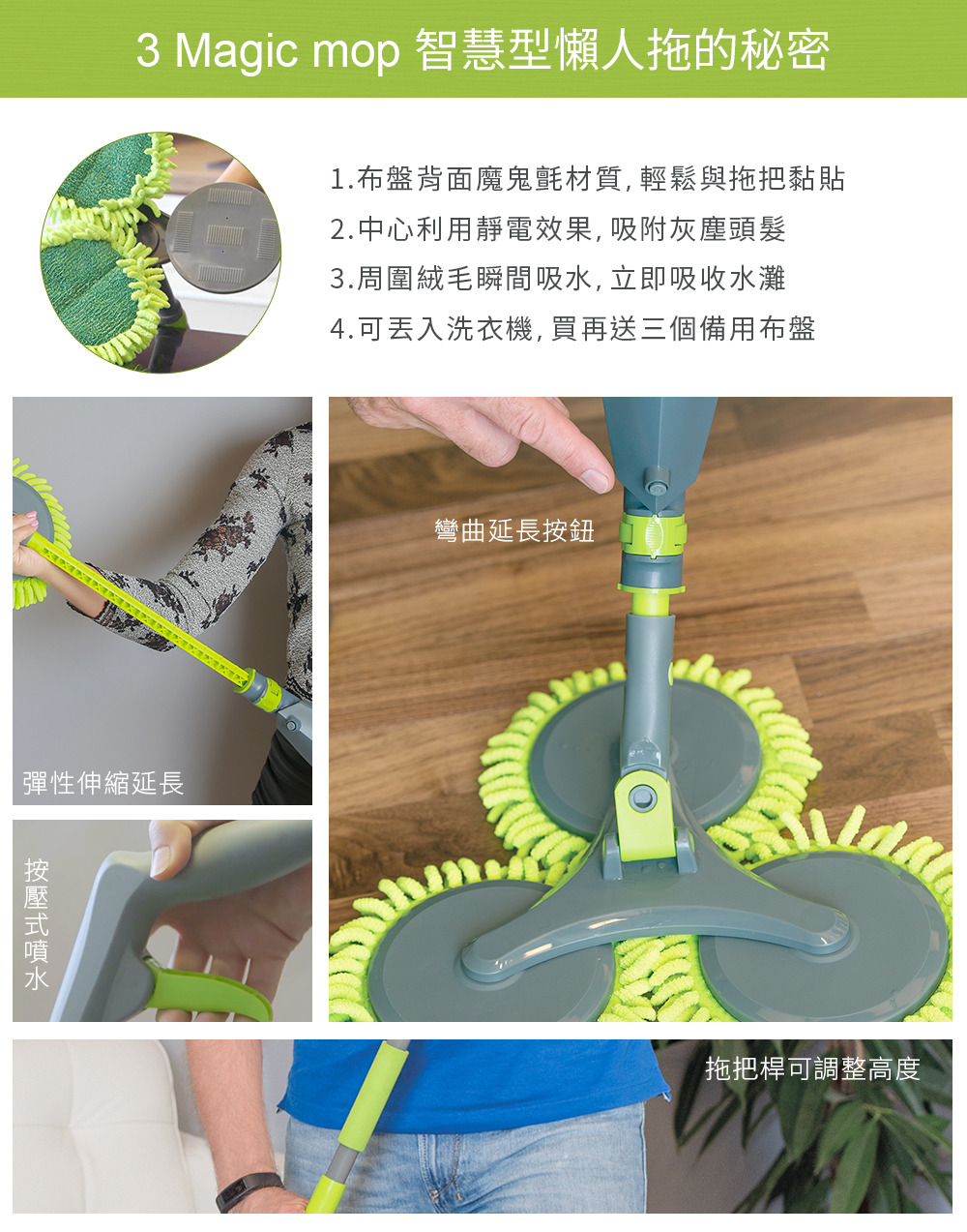 【洛克馬企業】智慧型懶人拖把 1支拖把 附贈6個布盤