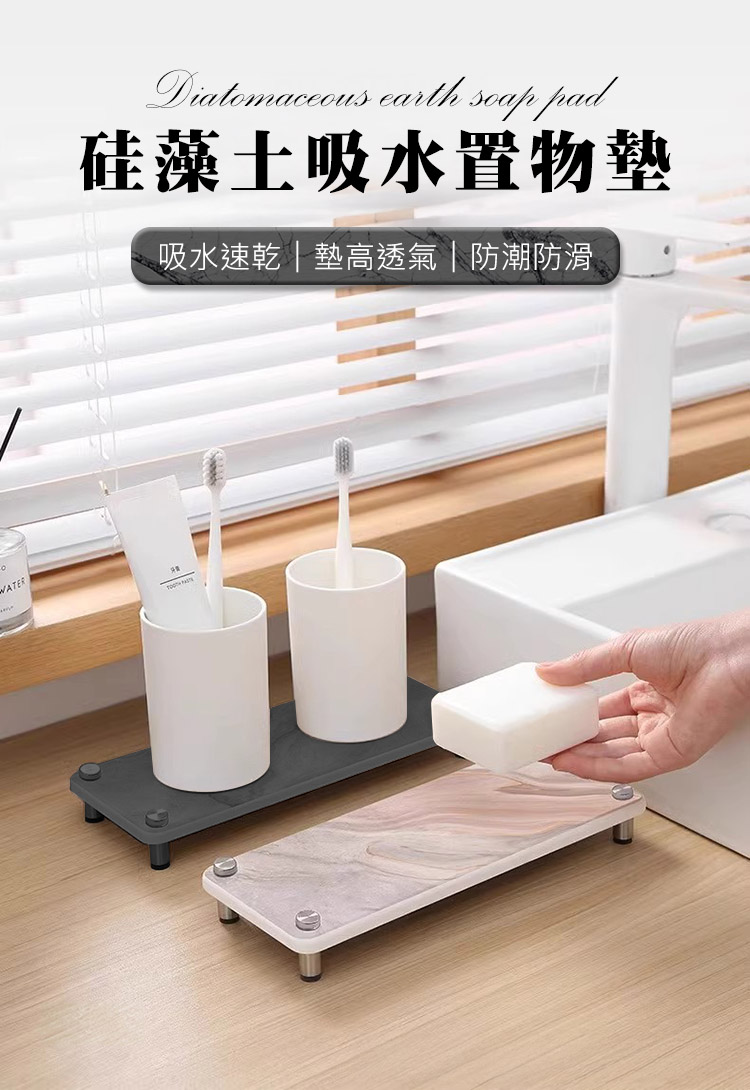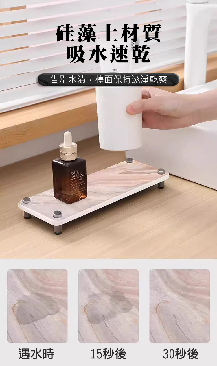硅藻土吸水置物墊【灰岩大理石-大號28*12cm】 吸水墊 架高 珪藻土 吸水墊 防滑墊 洗漱墊 硅藻土 浴室 置物架 置物墊