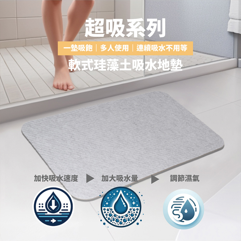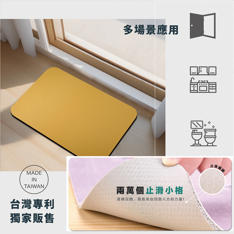 【怪獸】日竹門 超吸 軟式珪藻土吸水地墊 斜紋線韻系列 (60x40cm) -大地黃