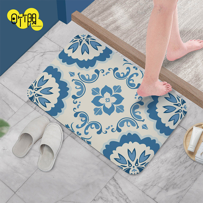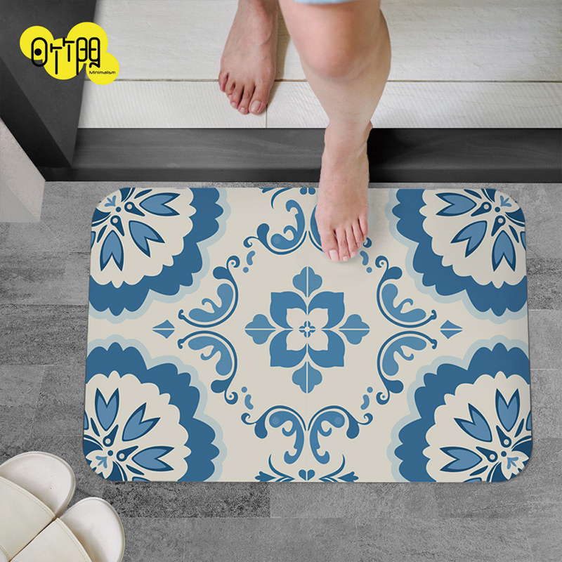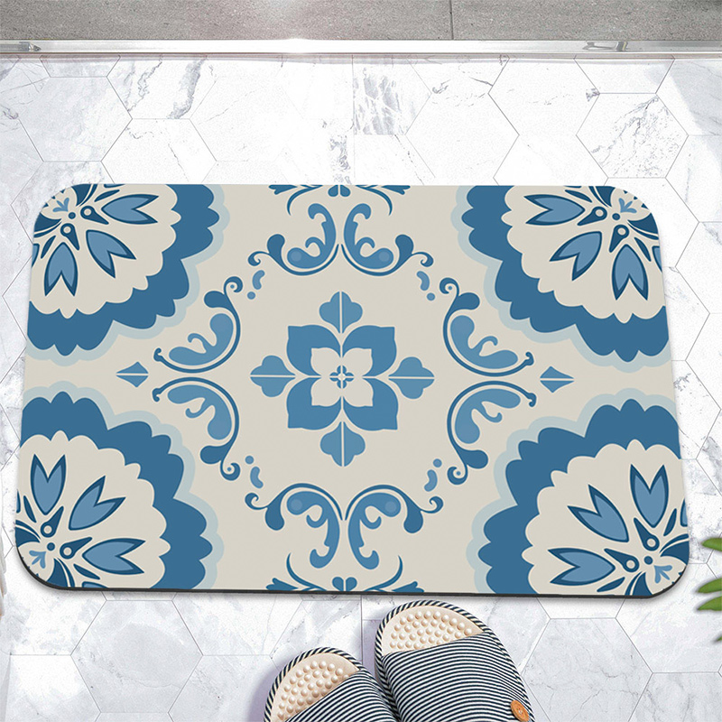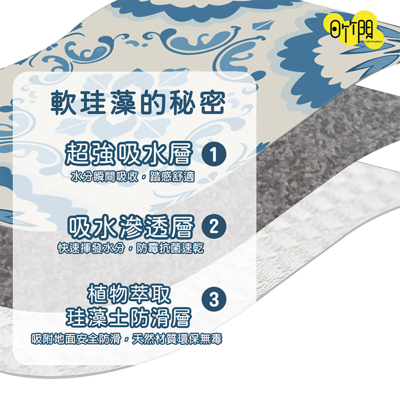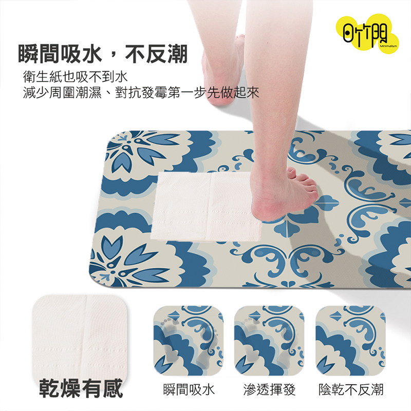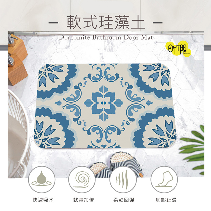 【怪獸】日竹門 10秒頂吸 軟式珪藻土吸水地墊 白藍磚 (60x40cm)