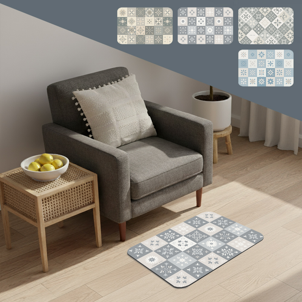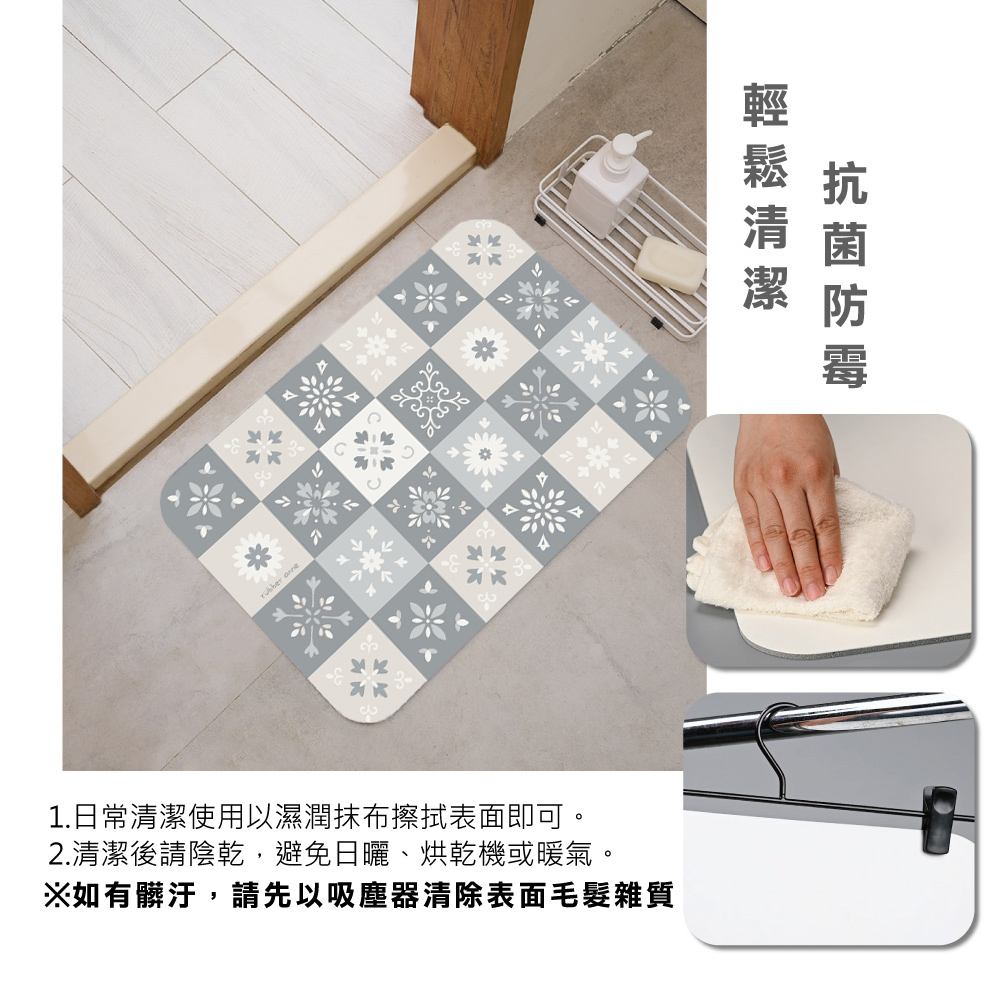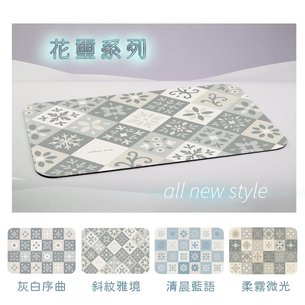 【怪獸】rubber anne 10秒頂吸 軟式珪藻土吸水地墊 花璽系列 (60x40cm) -清晨藍語
