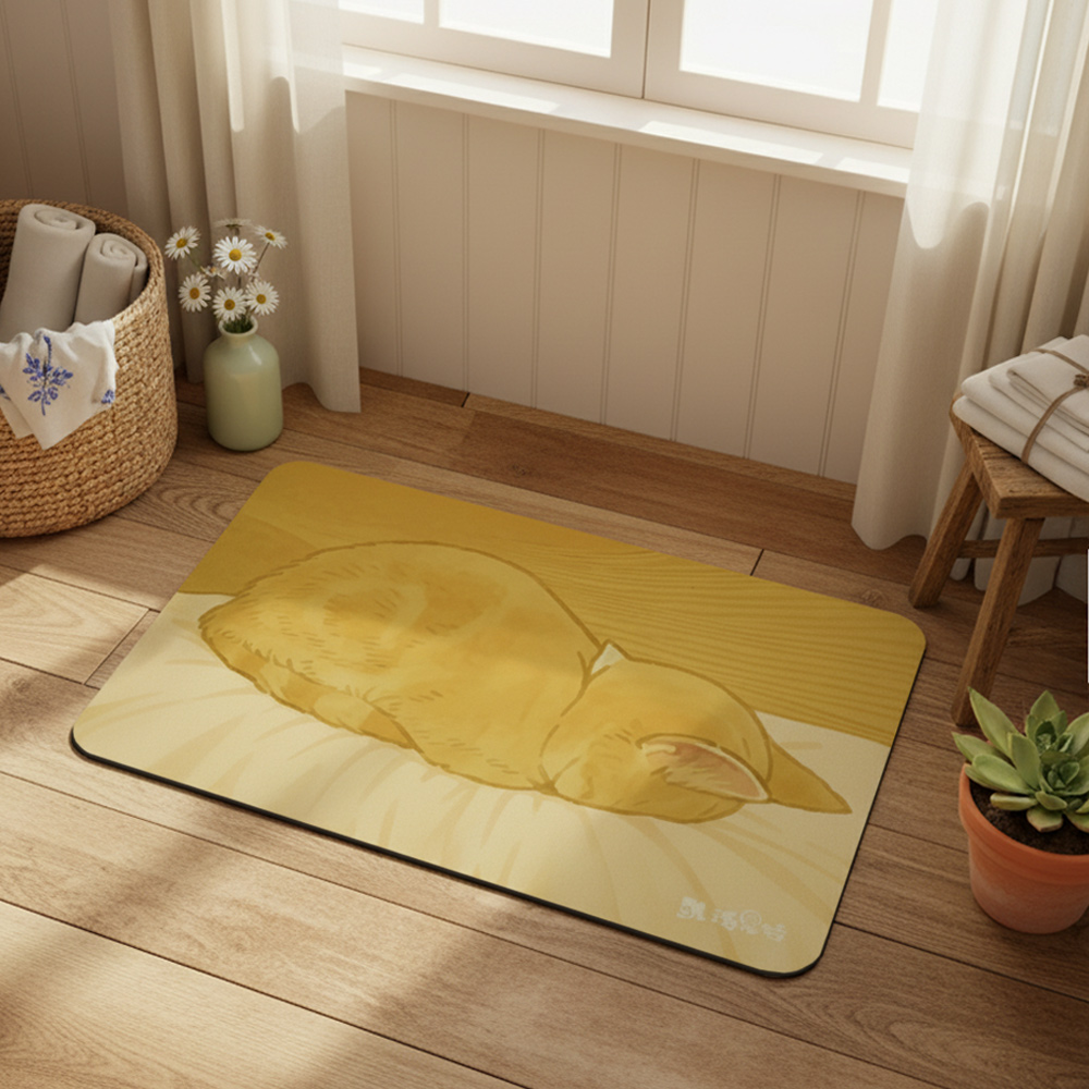 【怪獸】瑪思特 軟式珪藻土吸水地墊 睡癱貓系列 (60x40cm) -斷線貓