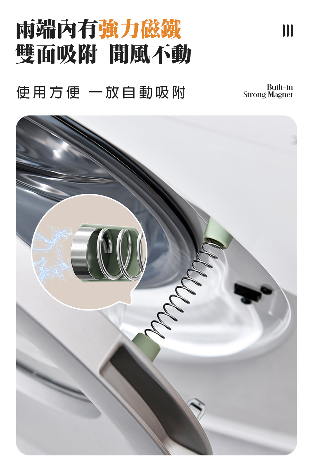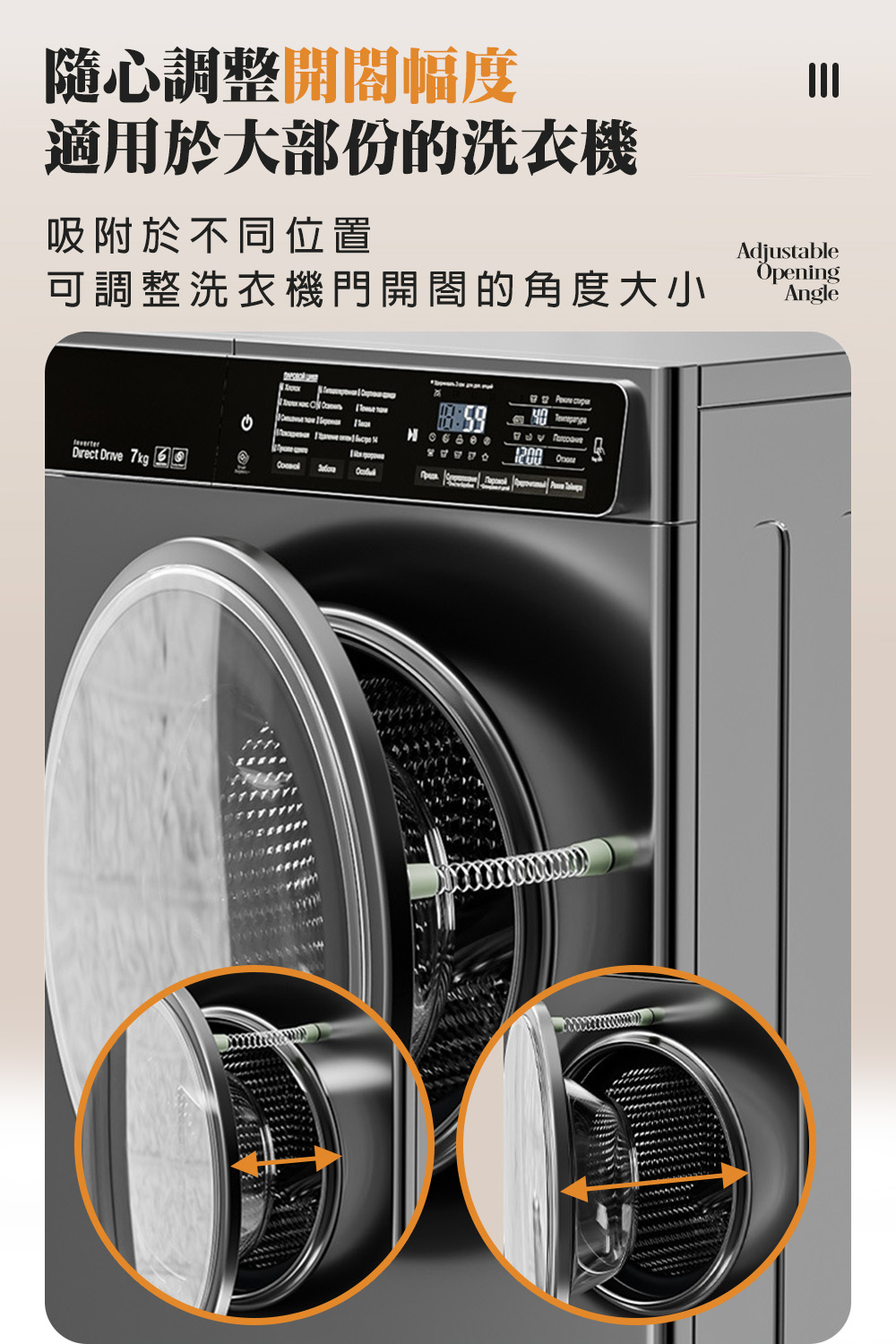 洗完衣服,總怕洗衣機門關著悶出霉味?這款【洗衣機門擋🧲】兩端磁鐵設計,輕鬆固定門縫讓洗衣機保持開啟狀態通風不再長霉🌬️!附上2片引磁片,可貼於無法磁吸的位置適用各種前開式洗衣機不用打孔、不傷機身簡單一吸就搞定👌保持清新無異味,就是這麼輕鬆✨【產品信息】產品名稱:洗衣機門擋彈簧支架產品材質:矽膠、不鏽鋼、磁鐵產品尺寸:1.7*1.7*10cm產品重量:約18g包裝內容物:彈簧支架*1、引磁片*2