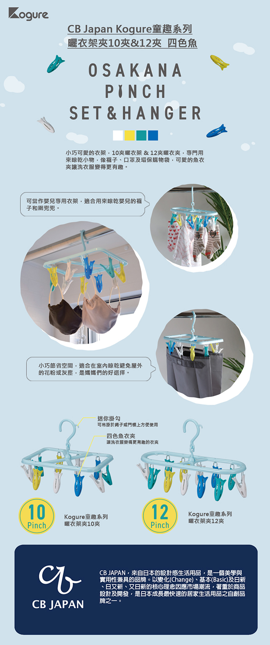【CB JAPAN】Kogure 童趣系列曬衣架夾12夾 四色魚