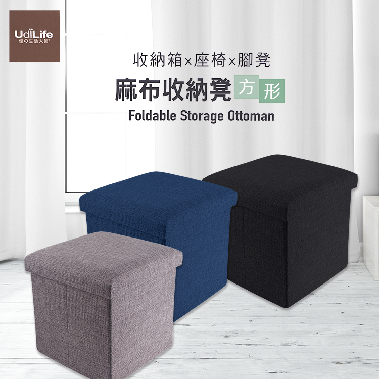 品田日居/麻布收納椅凳/方形-3入
