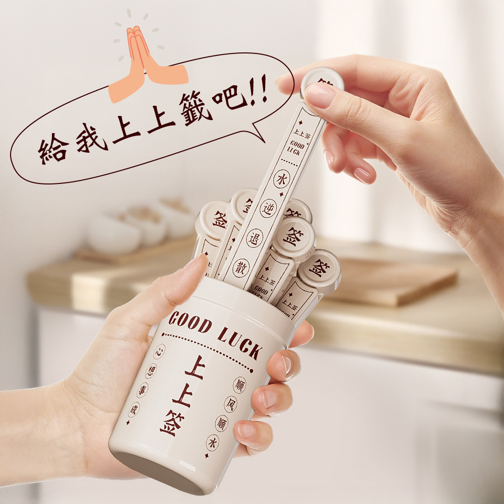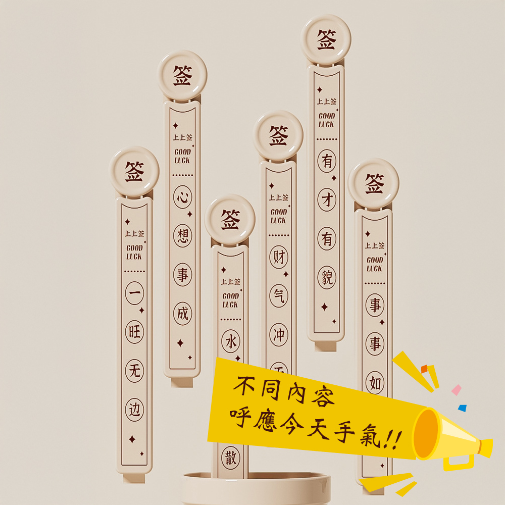 🍀 上上籤密封保鮮夾 🍀 抽好運,鎖鮮味!✨ 產品特色🔮 每支都有不同祝福,抽出好運帶來好心情🔒 內部雙凹槽設計,密封效果更出色,告別食物受潮📌 收納盒背面磁力設計,可直接吸附冰箱,節省廚房空間👌 卡扣按壓設計,開合輕鬆不費力🌈 多色選擇:典雅米色、喜慶紅色🥐 適用於各種零食、穀物、餅乾等食物保鮮💕 生活小確幸📅 每天開零食時抽出一支,享受驚喜小確幸🎁 精美設計,送禮自用兩相宜🏠 廚房收納好幫手,讓雜亂的塑膠袋有序擺放🍪 食物不再受潮,省錢又減少浪費💪 堅固耐用,一次購買長久使用📋 產品規格📏 收納盒尺寸:9 x 6.2cm📏 密封夾尺寸:12.3 x 2cm📦 商品內容:6支密封夾+1個收納盒🧲 背面採用磁力貼設計,可吸附於冰箱上上籤密封保鮮夾,不只是實用的保鮮小物,更是帶來好運的生活小確幸!每天抽一支,好運好心情都抽出來~🥰✨