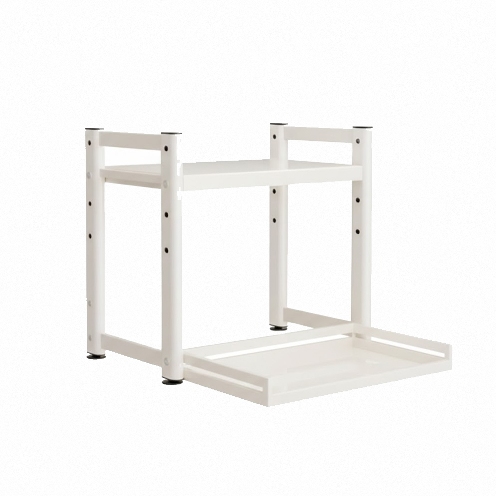 這款可調式微波爐架能有效利用垂直空間,將微波爐、烤箱等電器分層收納,釋放檯面空間,讓廚房不再雜亂擁擠。適用於寬度 56cm 以內的電器,層高自由調整,氣炸鍋、電鍋都能輕鬆放入,抽拉設計方便使用,是你廚房收納的好幫手。