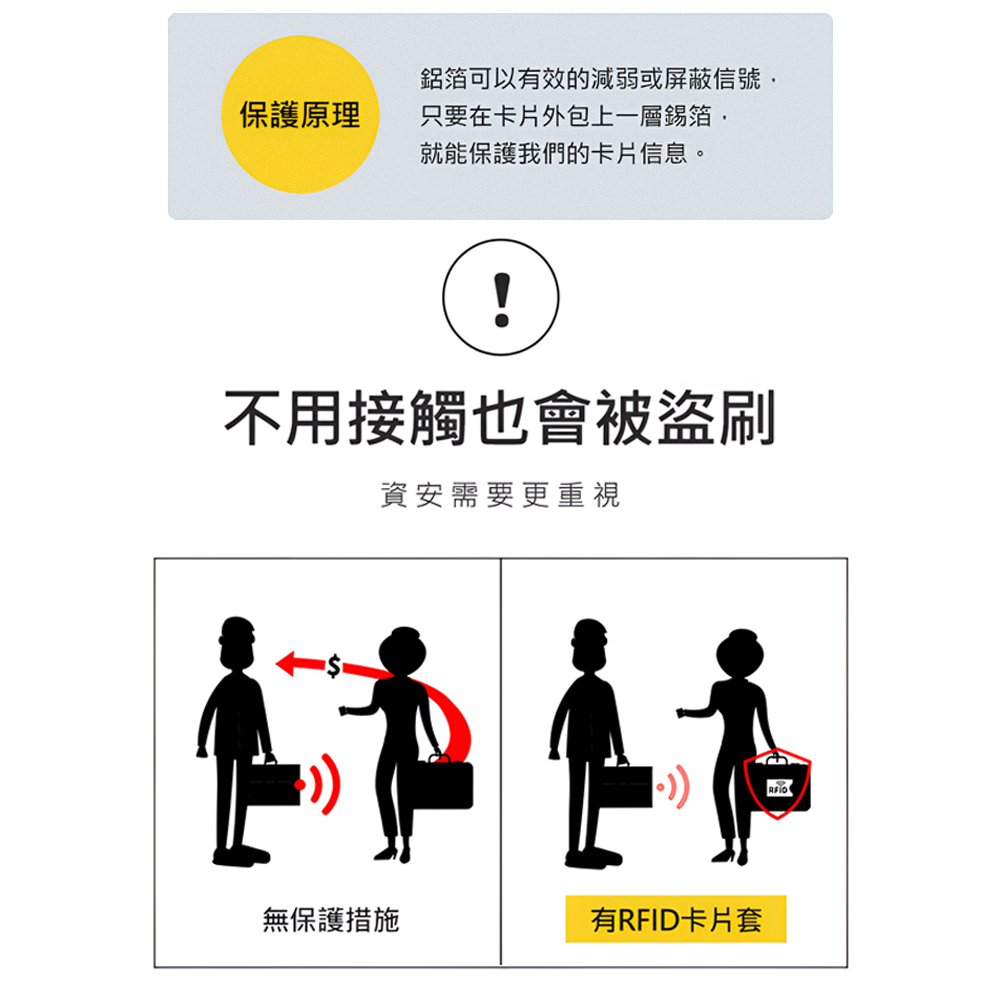這款RFID旅遊防盜刷卡套特別適合注重個人資料安全、經常旅行的朋友,解決卡片被盜刷的困擾。採用RFID防盜技術,有效阻擋未經授權的掃描,保護您的信用卡、悠遊卡等卡片資料,讓您在旅途中更加安心自在。輕巧設計方便攜帶,是您旅行時不可或缺的安全好夥伴。