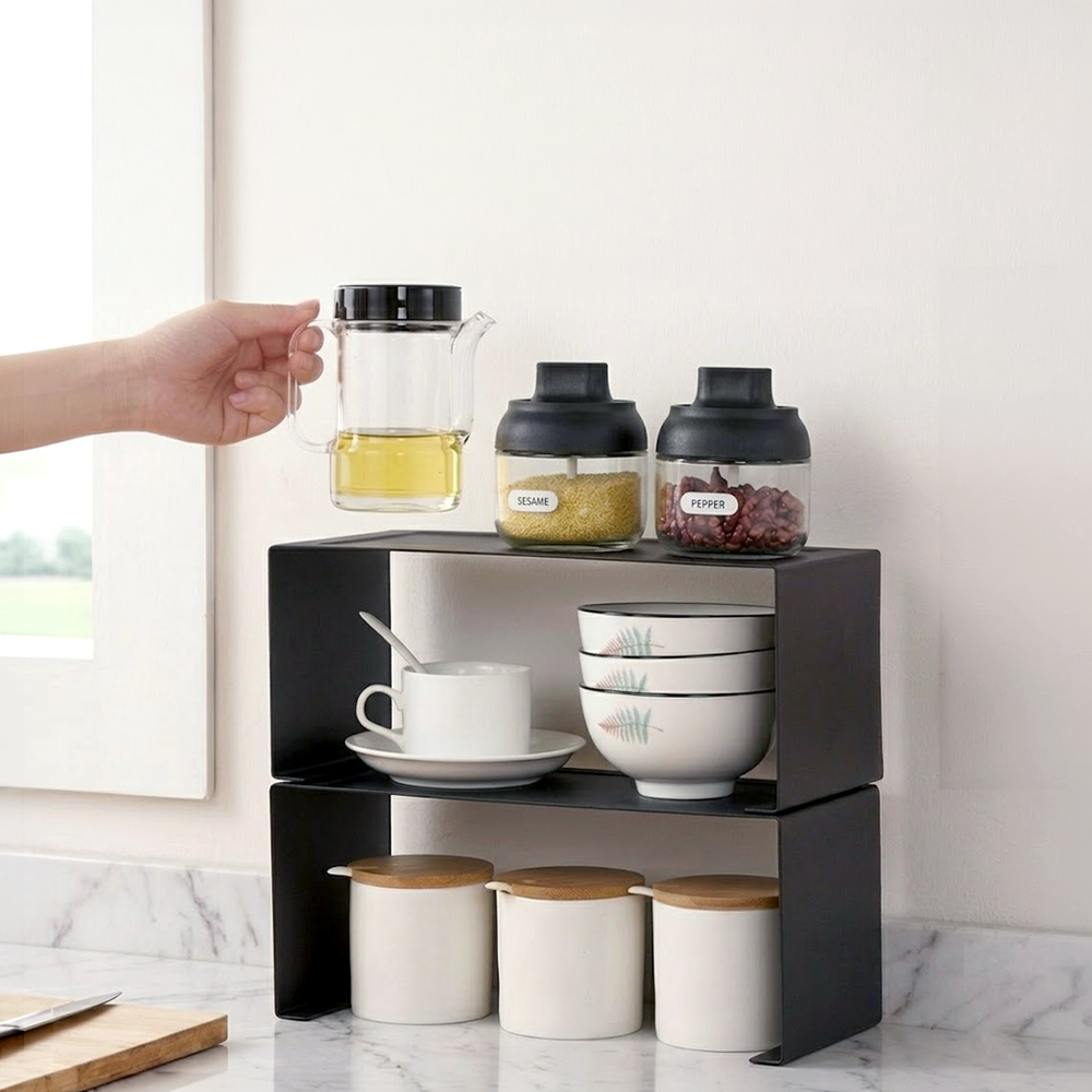 這款可堆疊醬料收納架特別適合小坪數廚房,能有效利用垂直空間,解決檯面收納不足的困擾。開放式設計讓您一目瞭然,輕鬆拿取所需調味品,烹飪更有效率,黑色烤漆外觀更增添廚房質感,讓收納不僅實用,更具美觀。