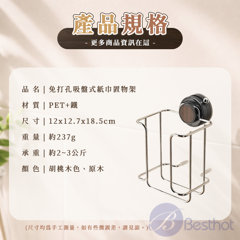 【Besthot】免打孔吸盤式紙巾置物架