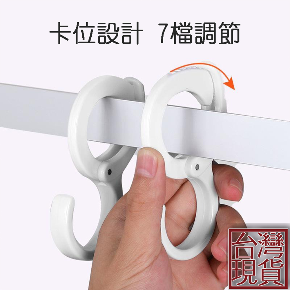 7段可調設計,可依橫桿直徑做調整隨身攜帶方便,隨時吊掛包包加厚設計,承重能力強卡扣式設計,安全防風不脫落,不管你是要曬鞋子、一般置物通通都能用嬰兒推車直上不脫落掛在衣帽間直接收納包包調節式鎖扣設計,可依據欄桿大小、桌面厚度…等,自由調整掛勾邊緣,打磨光滑,不易傷手、不易劃傷物品最方便的還是出門的時候了,包包裡面放一個不占空間建議承重在1〜3kg以內,以免造成損壞可使用在任何地方,吊掛衣物、包包、鞋帽等都超方便,居家收納的好幫手適用場景:臥室、客廳、衛生間、桌面、廚房、晾衣、辦公室