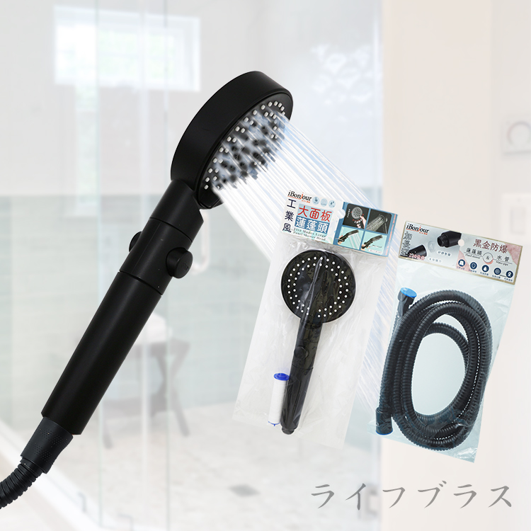 工業風大面板蓮蓬頭x1+水管-200cmx1
