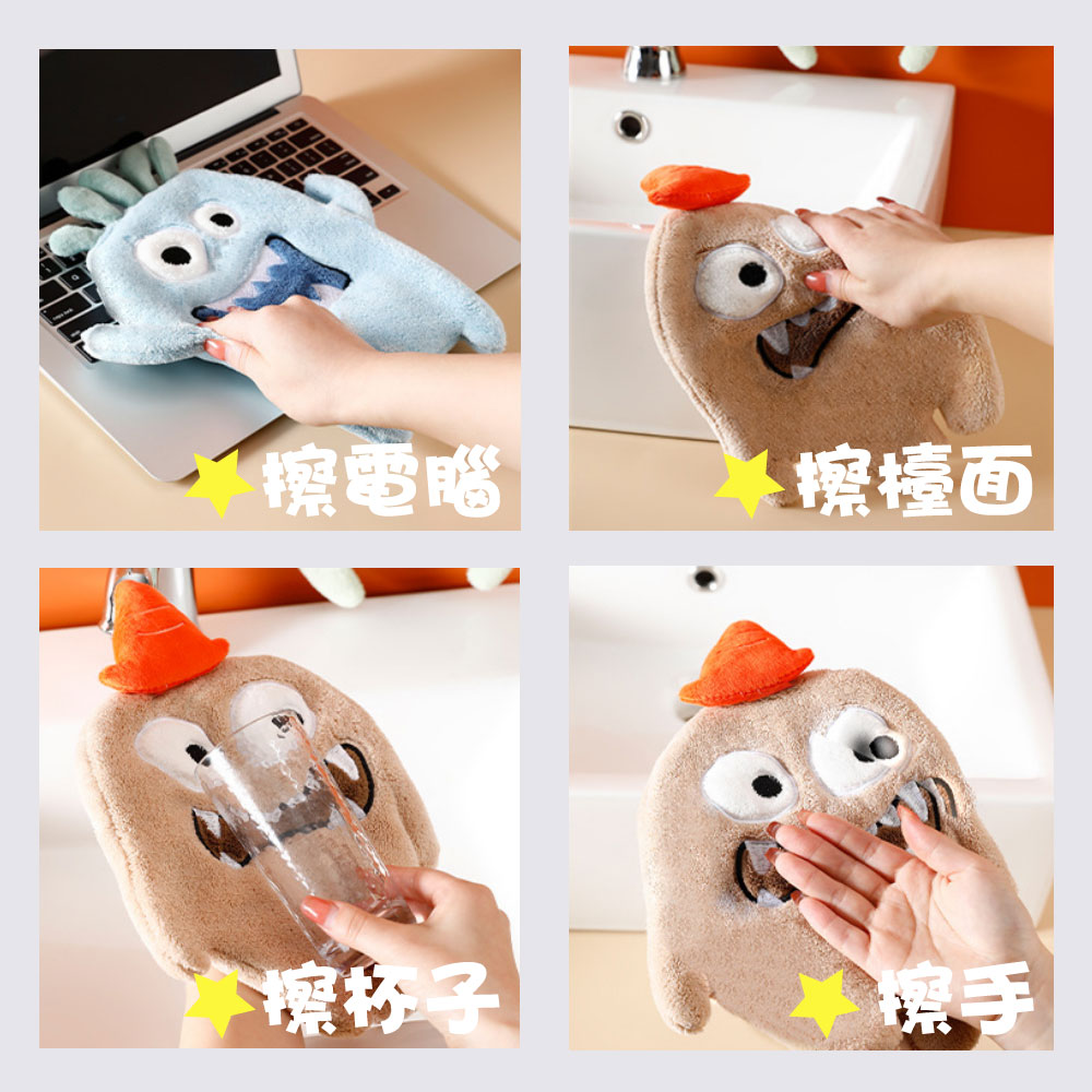 小怪獸擦手巾【藍色-驚嚇怪獸】擦手巾 擦手布 擦手 可掛式 毛巾 加厚款 珊瑚絨 吸水手巾 吸水抹布 抹布 布