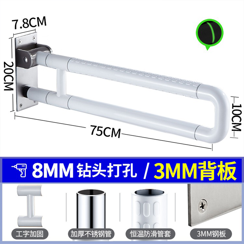 折疊標準型75CM白色無腿 U 型無障礙扶手