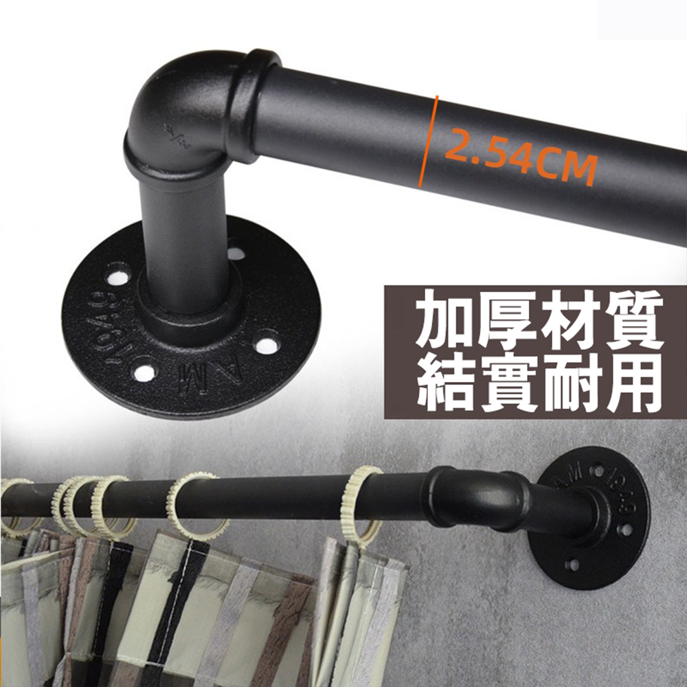71-426cm北歐復古黑鐵水管窗簾吊桿