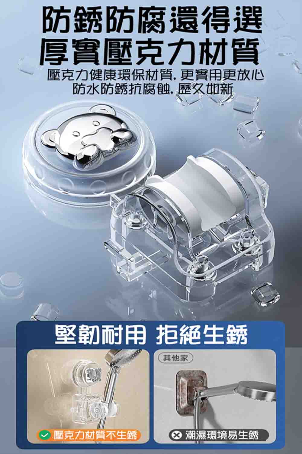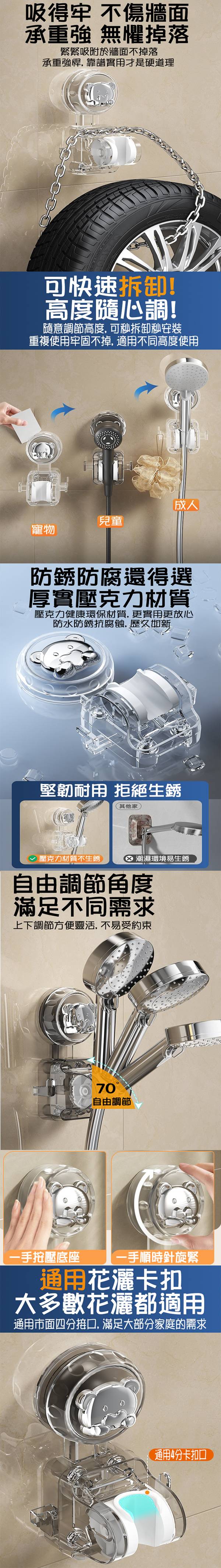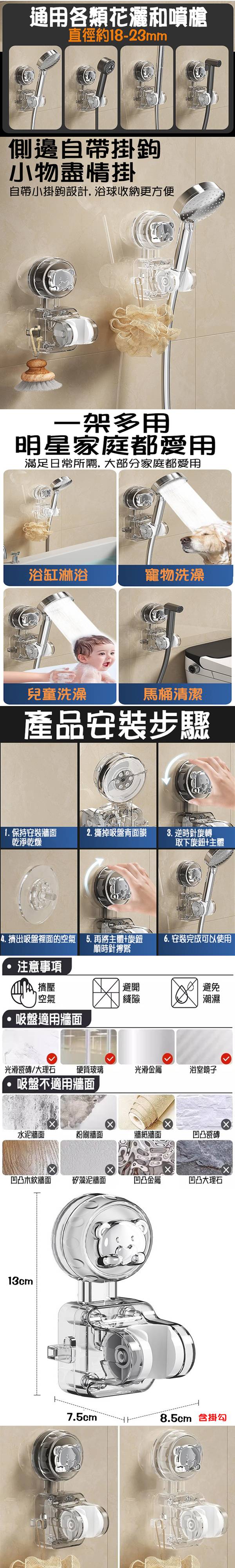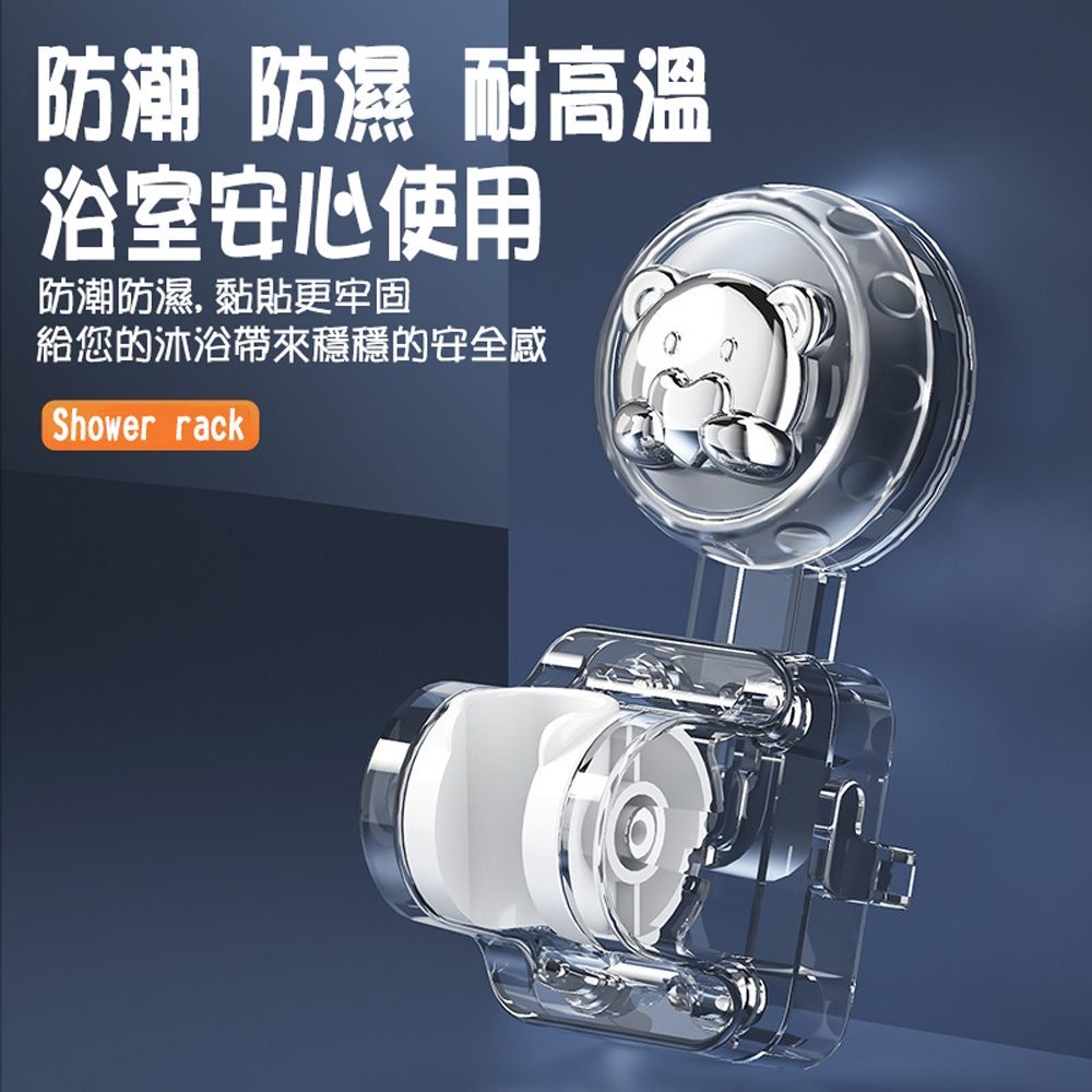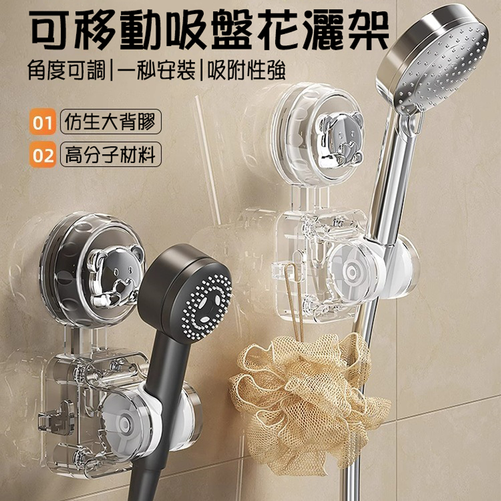 【SV61367】免打孔 無痕可移動 熊頭吸盤式 可調節淋浴支架 蓮蓬頭掛架 花灑支架掛鉤