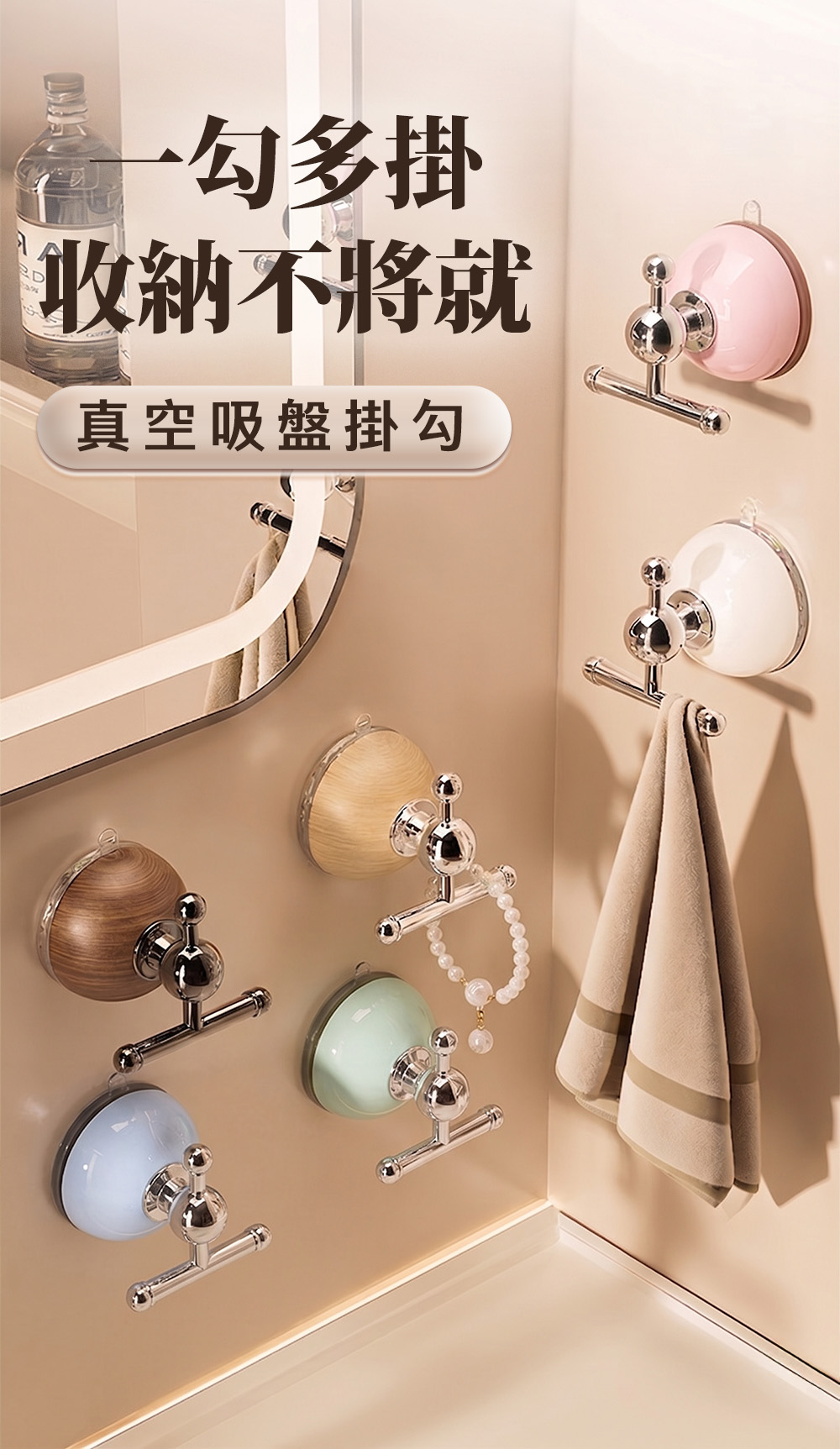玻璃、瓷磚、大理石、金屬面都能牢牢吸附,不怕水氣濕淋淋。