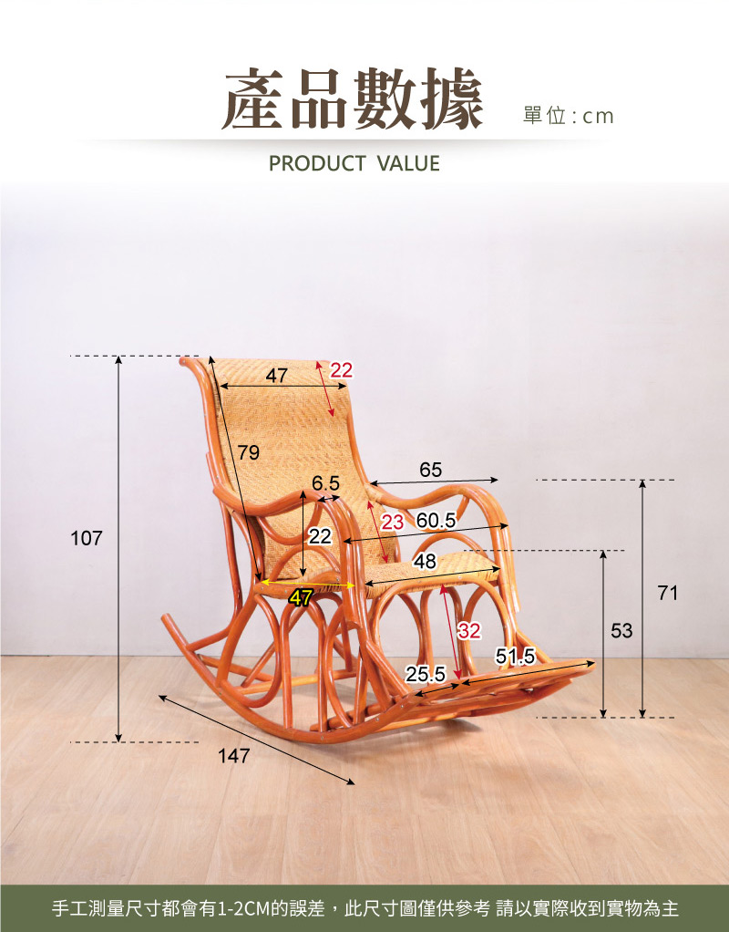 扶手外寬60.5cm、扶手內寬48cm、扶手到坐墊22cm