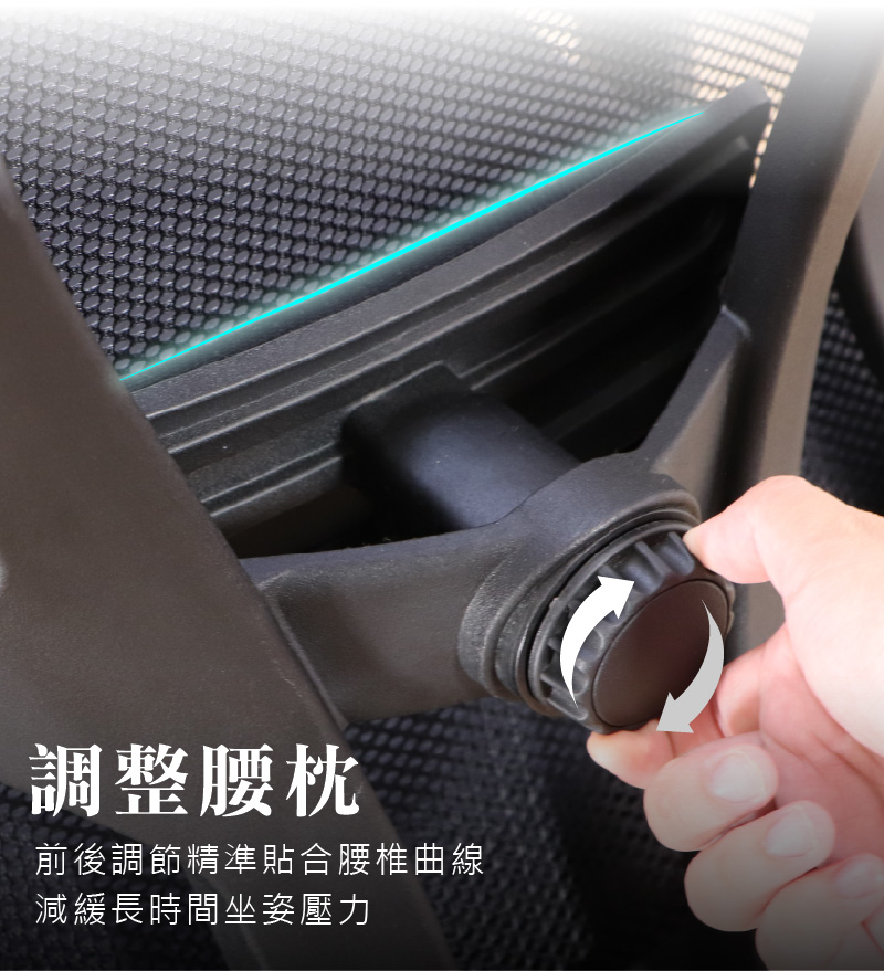 前後調節精準貼合腰椎曲線,減緩長時間坐姿壓力。