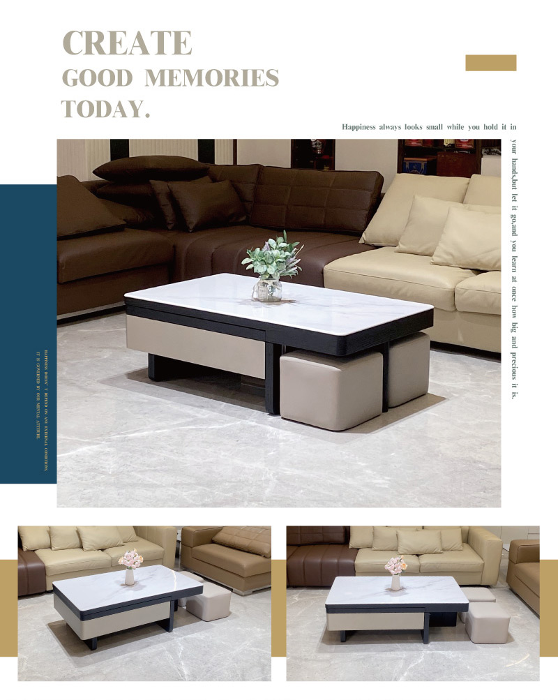 (LOGIS)輕奢微晶石伸縮茶几(一桌兩椅)【VG-TA-CH2】