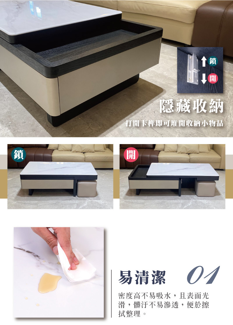 寬敞桌面,提供充裕的空間,讓您輕鬆擺各式物品,為您的客廳增添一份自在舒適的氛圍